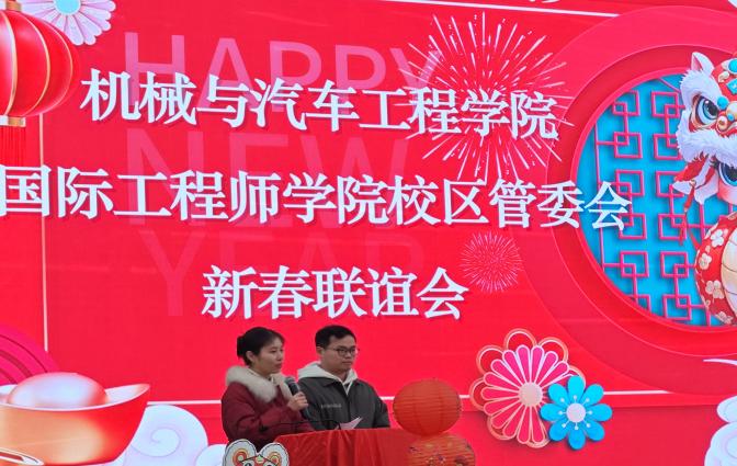 本网讯1月10日,机械与汽车工程学院联合国际工程师学院校区管委会举办以“砥砺前行开新局,齐心协力绘宏图”为主题的新春联谊会,机械与汽车工程学院、国际工程师学院校区管委会100余名教师、家属及退休教师代表参加活动。活动由刘金朵和王旭成两位博士主持。