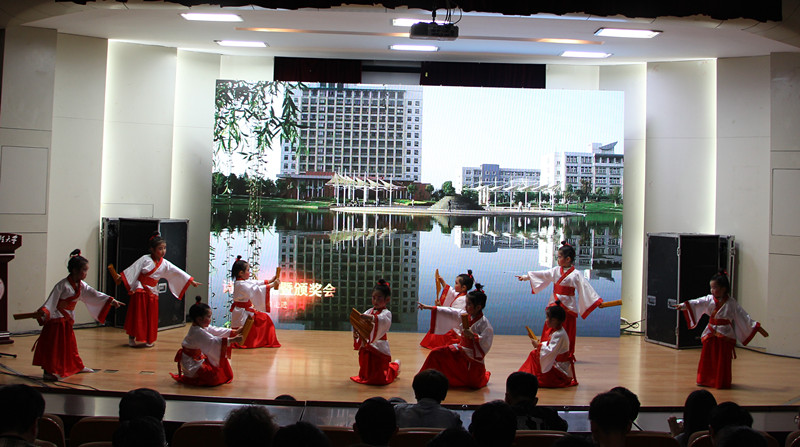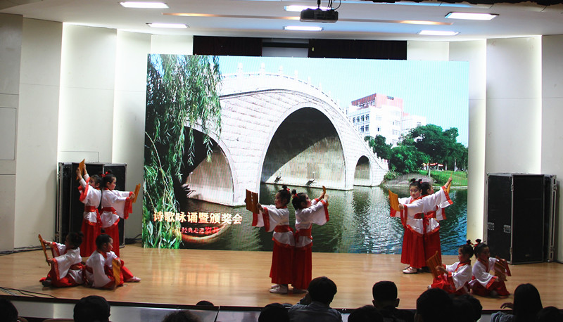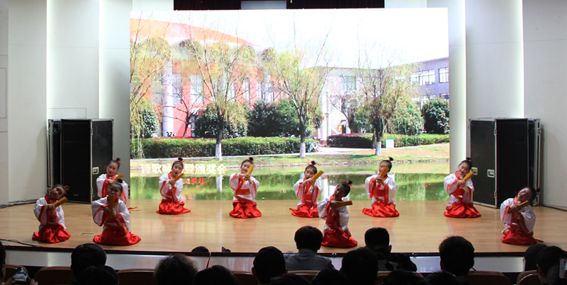 让经典走进岁月”诗歌咏诵暨颁奖会于2018年4月14日下午三点在学术报告厅由校工会、宣传部、校团委联合举办。我校附幼大班小朋友表演的舞蹈《春晓》作为第一个节目展示。