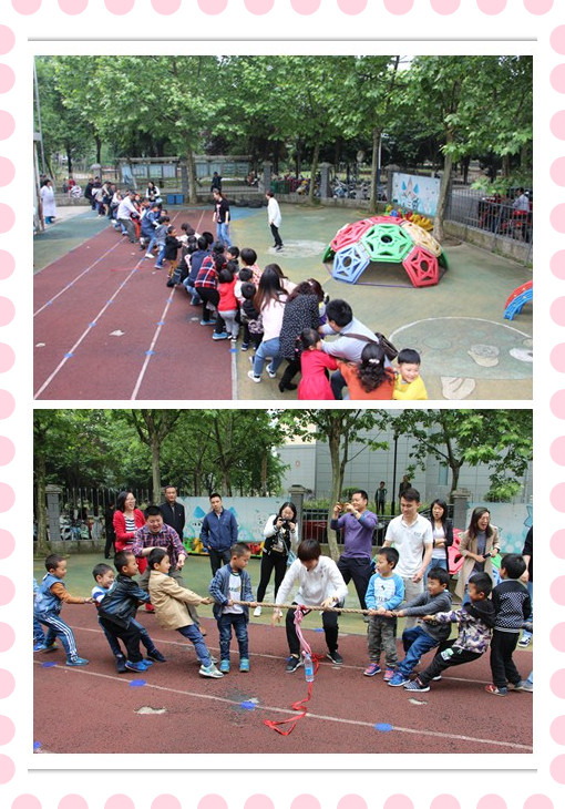课堂教学中,老师针对线的特征和作用,与孩子们展开互动,并充分给孩子们表现的机会,课堂氛围较好;在亲子游戏拔河中,老师将游戏设置为三个环节,分别是孩子和家长合作比赛,家长比赛和孩子比赛。这个游戏中,孩子和家长们比赛激烈,热情高涨,争先恐后。