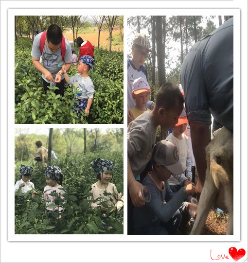 玩乐的时间流失的飞快,出了力的身体才感觉饥渴。很快到午饭的钟点,当孩子们坐上座,拿起筷,狼吐虎咽的吃着爸爸妈妈和爷爷奶奶亲手制作的饭菜时,我们才明白体验的意义。饭后,稍作休息,孩子们系上围裙,戴好头巾,武装齐备奔赴茶园,细细的尖嫩嫩的芽,被孩子们一次次采摘,人多力量大,片刻功夫,采茶满筐。炒茶的时候,也不影响活动正常开展,孩子们继续拿起挖铲前往菜园,挖野蒜摘野菜。当“农活”做完,继续开展毛毛虫趣味运动赛:家长与家长分组对抗,孩子与家长共同组队相互对抗,这里没有输赢,只有孩童般的呐喊声响彻山林,只有欢声笑语弥漫天际。