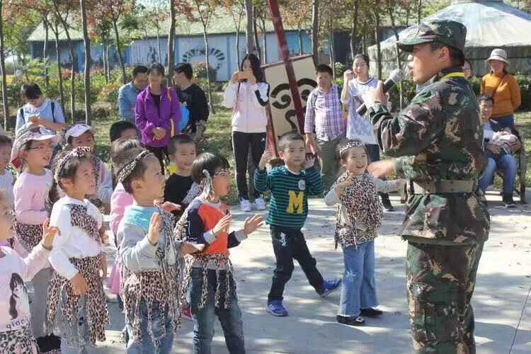 本次秋游的目的地在马鞍山当涂桃花缘农家乐,距离芜湖只有一小时不到的车程,本次活动的主题是疯狂原始人!到达目的地之后,领队老师带着家长和小朋友们开始了破冰游戏!