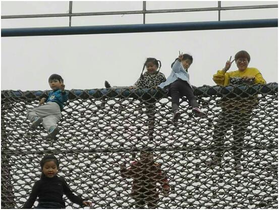 吃过午饭,稍事休息,就到了自由活动的时间,大家在亲子拓展园里活动开了:荡秋千,走轮胎独木桥,滑索,攀爬,水桥,玩得不亦乐乎!
