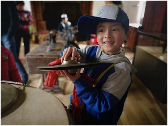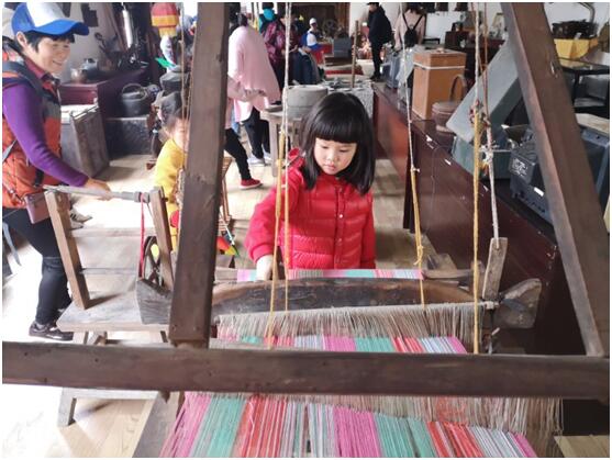 我们的第一站是:农耕文化园,这里有农家用的床,织布机,电视机,收音机等生活用品,小朋友们好奇地这里看看,那里瞧瞧,还找到了“新玩具”:捶起来咚咚响的鼓和敲起来梆梆响的锣,大家你敲敲,我打打,乒乒乓乓好不热闹。