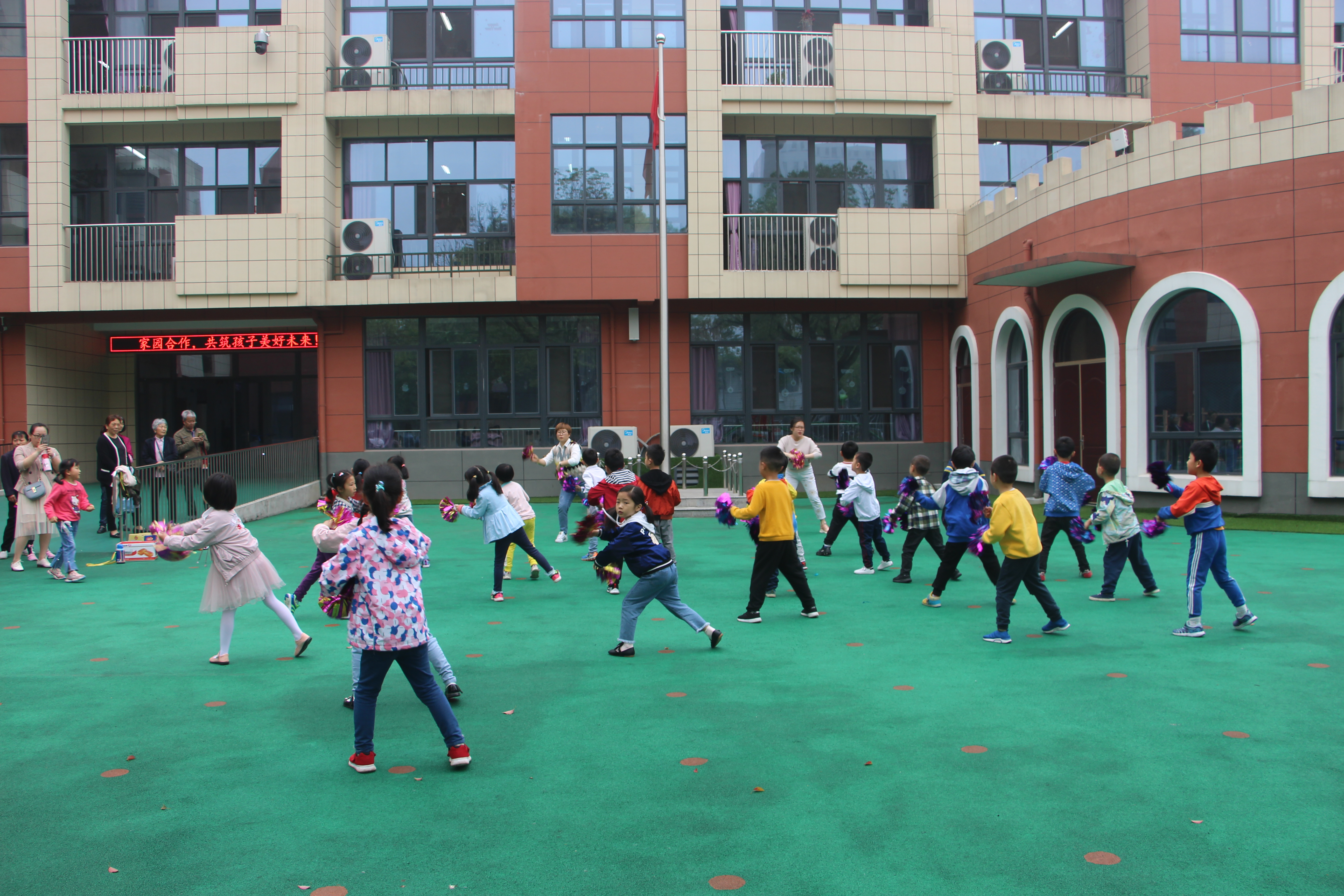 看,晨间活动开始啦!孩子们排着整齐的队伍来到操场踢毽子,一旁观看的家长们忍不住参与其中,欢声笑语,其乐融融。
