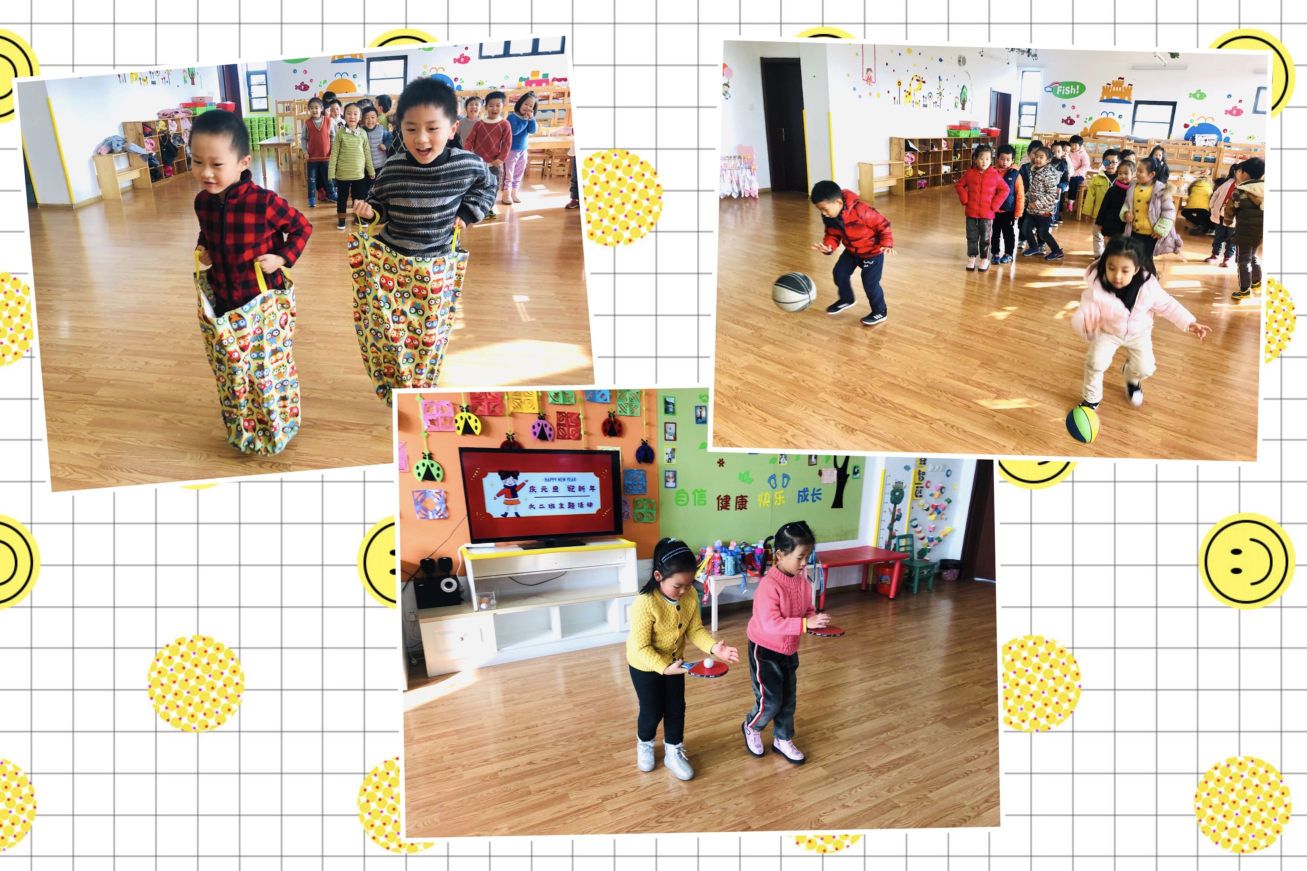 伴随着“运动员进行曲”激昂雄壮的旋律,活动正式拉开帷幕。本次活动分三项活动内容,首先是热身律动“开心过大年”:在老师们的带领下,大家一起活动起来,随着动感的节拍,孩子们跳着笑着,脸上洋溢着快乐的笑容。接着是竞技类游戏:孩子们积极参与到老师们精心设计的《拍球接力》、《开火车》、《趣味运球》、《袋鼠跳》、《扔沙包》等游戏中,在活动中时不时爆发出快乐的笑声和热烈的欢呼声,场面热火朝天,好不热闹。最后是“唱”想新年:全体幼儿大合唱“新年好”,孩子们用美妙的歌声迎接新的一年,也给活动画上了一个圆满的句号。