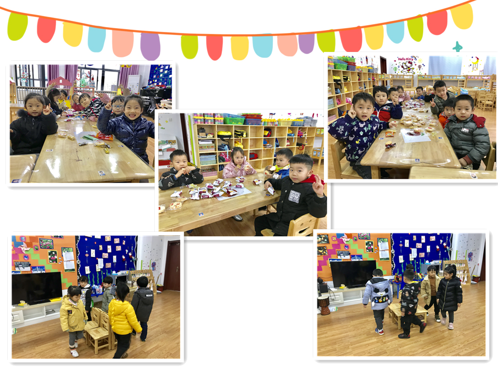 教室里张灯结彩,到处弥漫着浓厚的新年气氛。联欢会在老师和孩子们的祝福声和欢笑声中拉开了帷幕,大家互诉着在幼儿园成长的快乐和对新年的美好愿望。歌舞表演《娃娃大拜年》将大伙儿带入了才艺展示环节,孩子们载歌载舞,灿烂的笑容洋溢在脸上,微微泛红的脸蛋像一朵朵盛开的小花。“运西瓜”、“抢椅子”、“小鸡出壳”是小朋友最爱的游戏。在老师们精心设计下,孩子们在场中追逐嬉戏,好不开心,他们在游戏中学会了团结合作和互助友爱。一段段优美的舞蹈,一首首动听的歌声,将整个联欢会现场带入了一个又一个高潮。最后,在歌曲《新年好》中联欢会圆满结束。