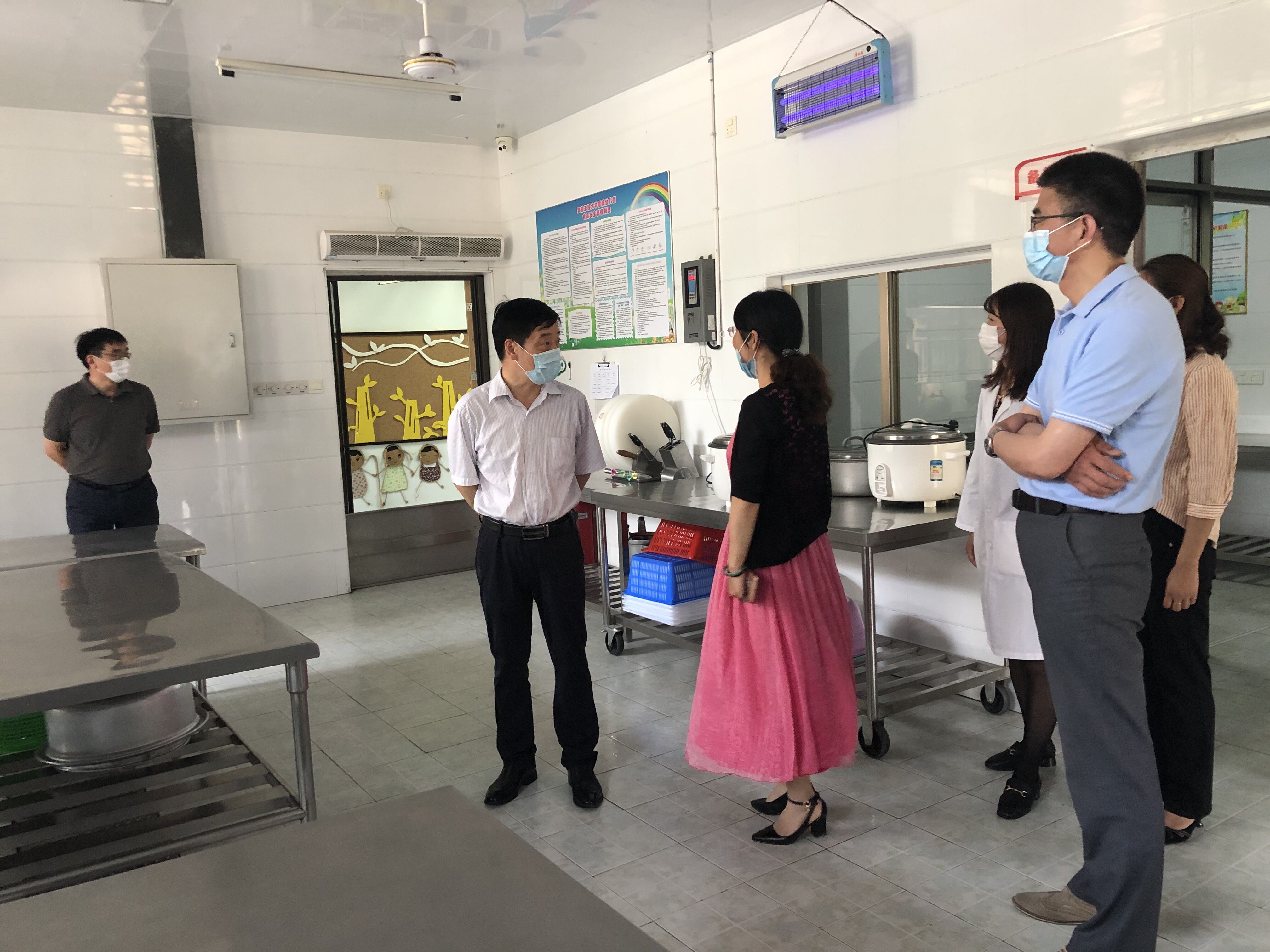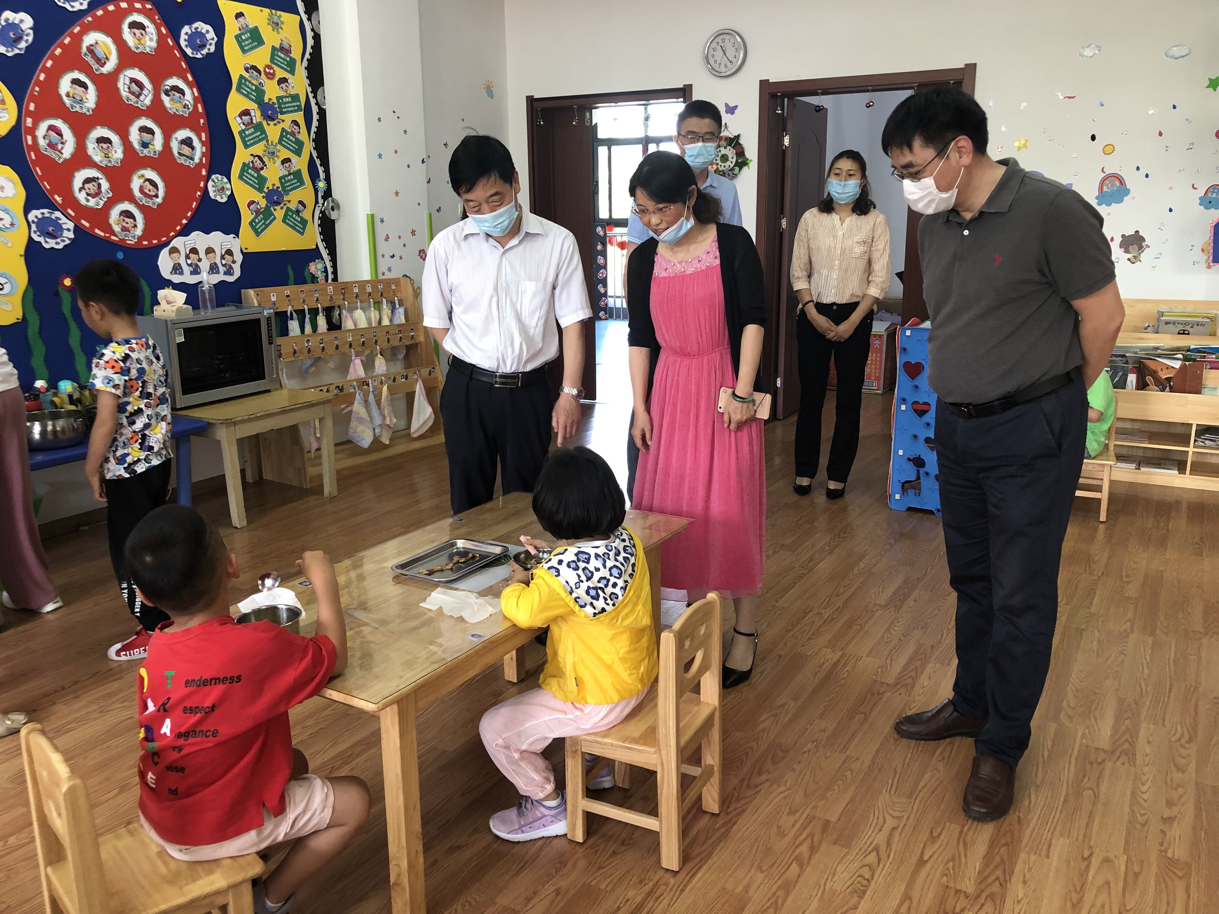 刘宁一行实地检查了幼儿园各班级、食堂、公共区域的环境卫生和物资配备情况,对幼儿园的新冠肺炎疫情防控情况和返园开课工作等给予了充分的肯定,他强调,幼儿园要压实疫情防控工作责任,严格各项防控措施,密切掌握师生出勤动态,保证全体师生身心健康。他走访了各个班级,与小朋友、老师亲切交流,深入了解孩子们在园的生活情况和教职工的工作情况。此外,刘宁详细地询问了校附幼参加市一类园评估情况,同时对今后的发展提出了意见和希望。