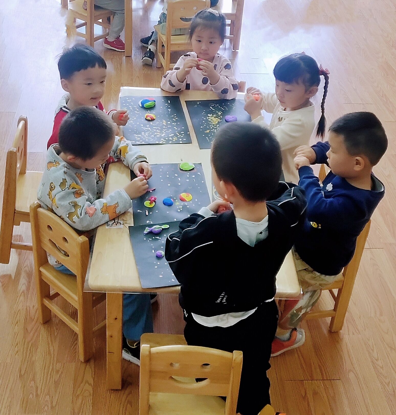 小朋友们早早的来到幼儿园,在丰富多样的晨间活动中开启了在园的一日生活。孩子们自主选择喜欢的桌面活动,有的用积木搭建了造型各异的建筑物,有的用纸黏土捏出了五颜六色的小花朵,有的用水彩笔画出一幅幅稚嫩有趣的图画,还有的在开心地阅读着各种绘本读物,氛围安宁而祥和。