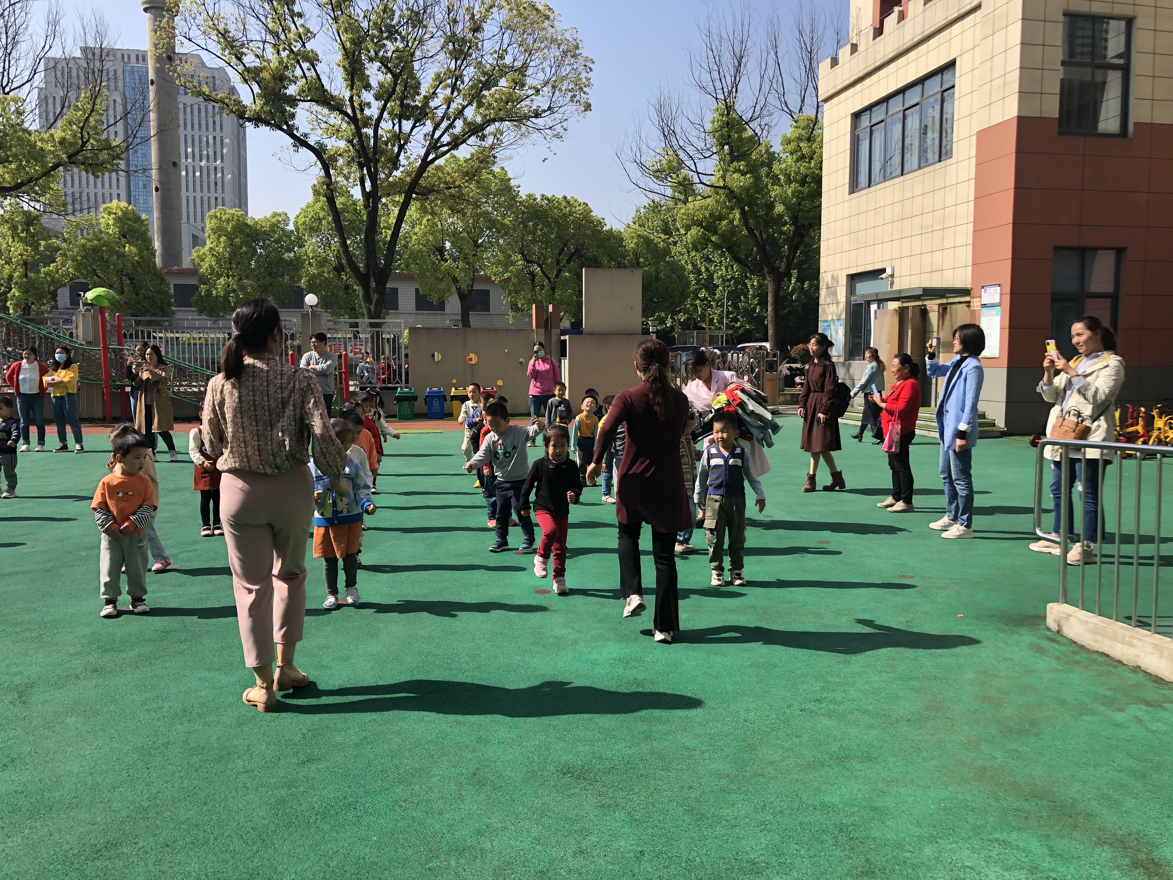 8:40-9:00是早操活动,在刘老师、宋老师、徐老师的带领下,小朋友们跟着音乐节奏,个个热情饱满地的完成了表演操和韵律操。小朋友们可爱的姿势,懵懂的神态,逗乐了在场观摩的各位家长。