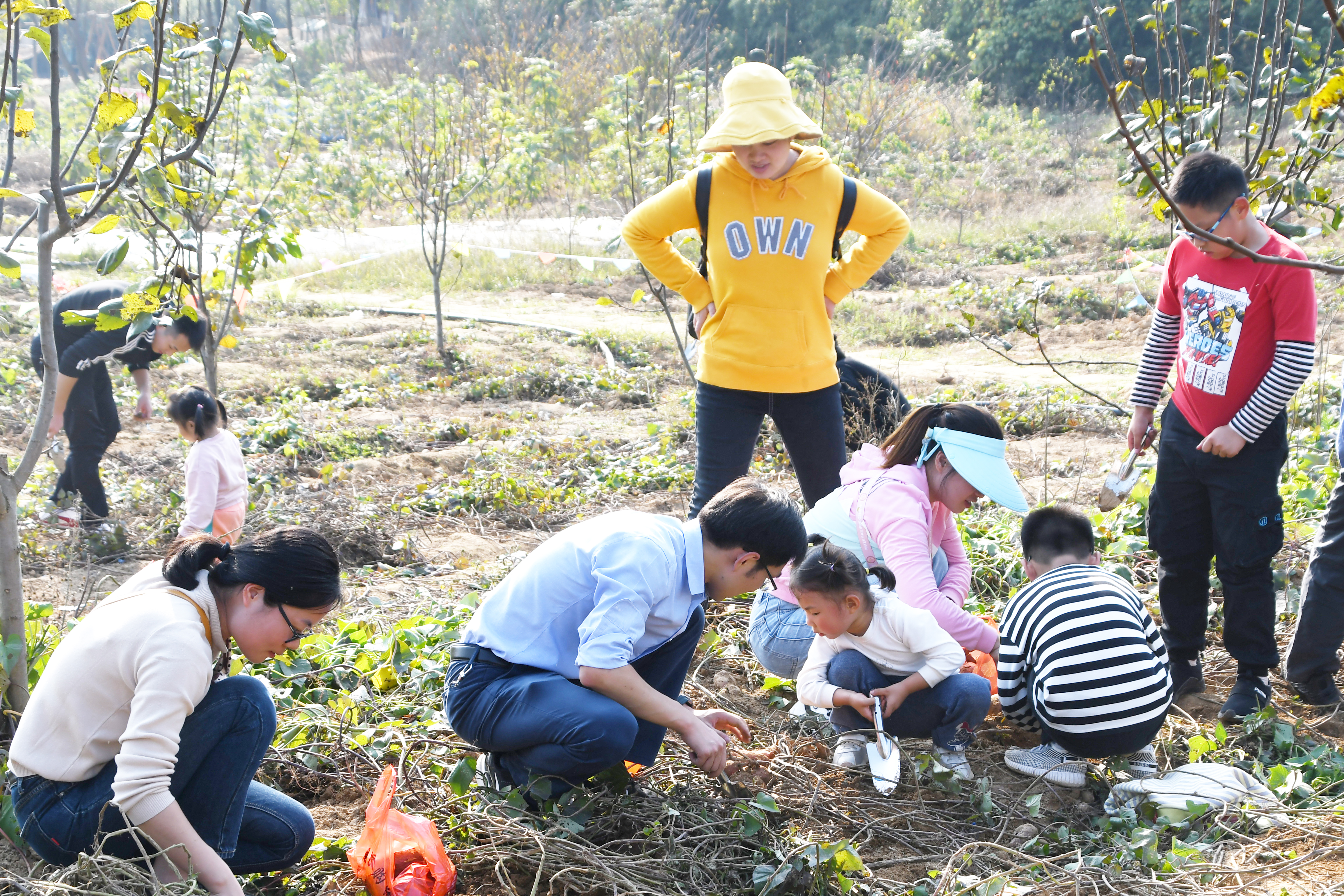 户外亲子活动不仅让孩子们在游戏中汲取了快乐,还在劳动中收获了喜悦。瞧,小家伙们拿着工具和爸爸妈妈一起在田里挖红薯呢,原本寂静的田野瞬间欢闹起来。“我挖到了一个”、“我这个红薯最大”、“我的红薯像葫芦”……开心的叫嚷声音此起彼伏,谁也顾不上身上的汗水,笑容在脸上绽放。