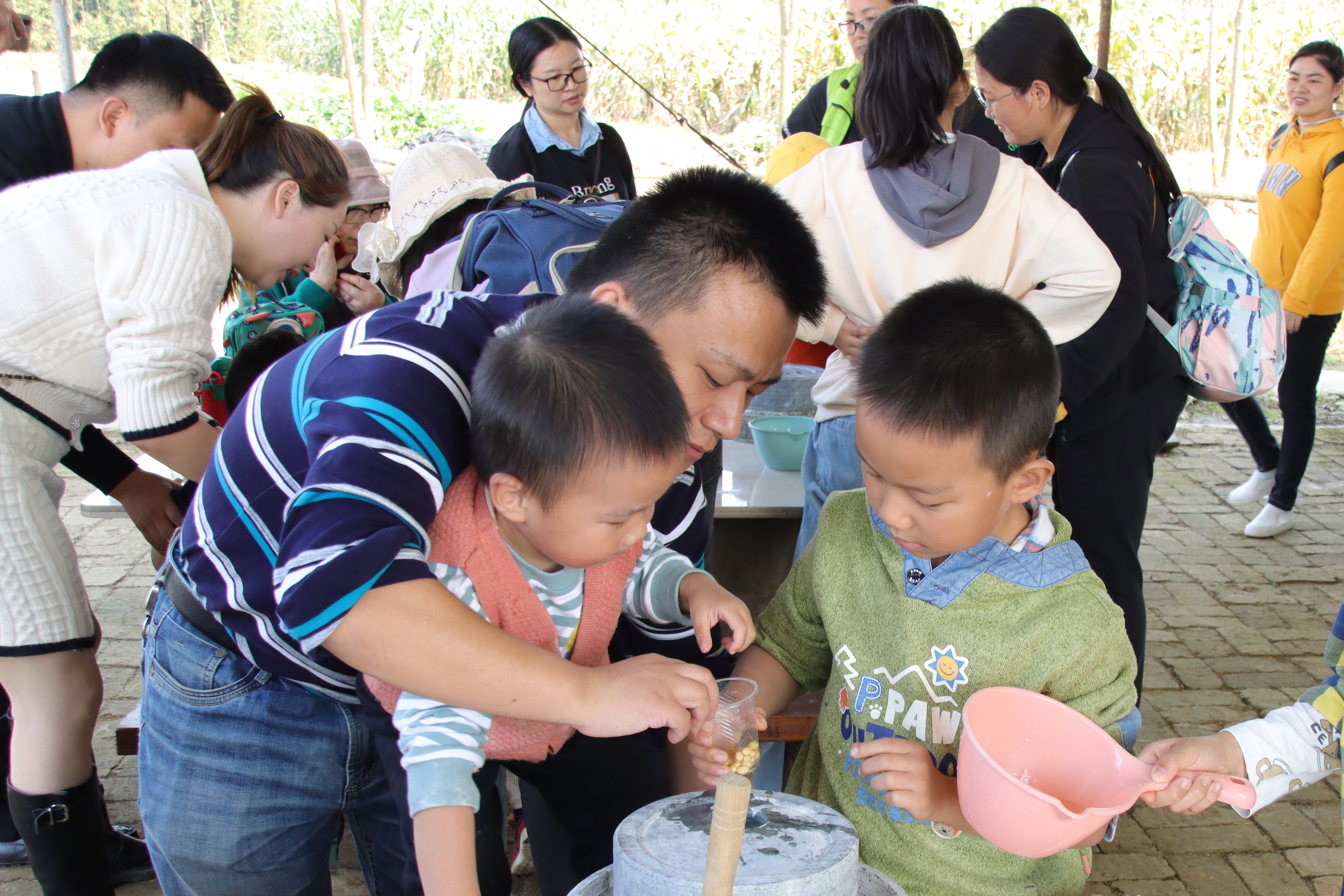 稍后,手工操作开始了。小朋友们在家长的指导下用农场工作人员事先准备好的食材和工具动手做出了一个个冰皮月饼。大家的作品还真不错,不仅造型好看,还好吃。做好的小朋友都迫不及待地品尝起来,还喃喃自语:“超级美味”!在老师和家长的带领下,小朋友们还亲自体验了传统的磨豆浆工艺,看着豆浆从磨盘上流淌下来,小朋友们都忍不住咽起了口水。