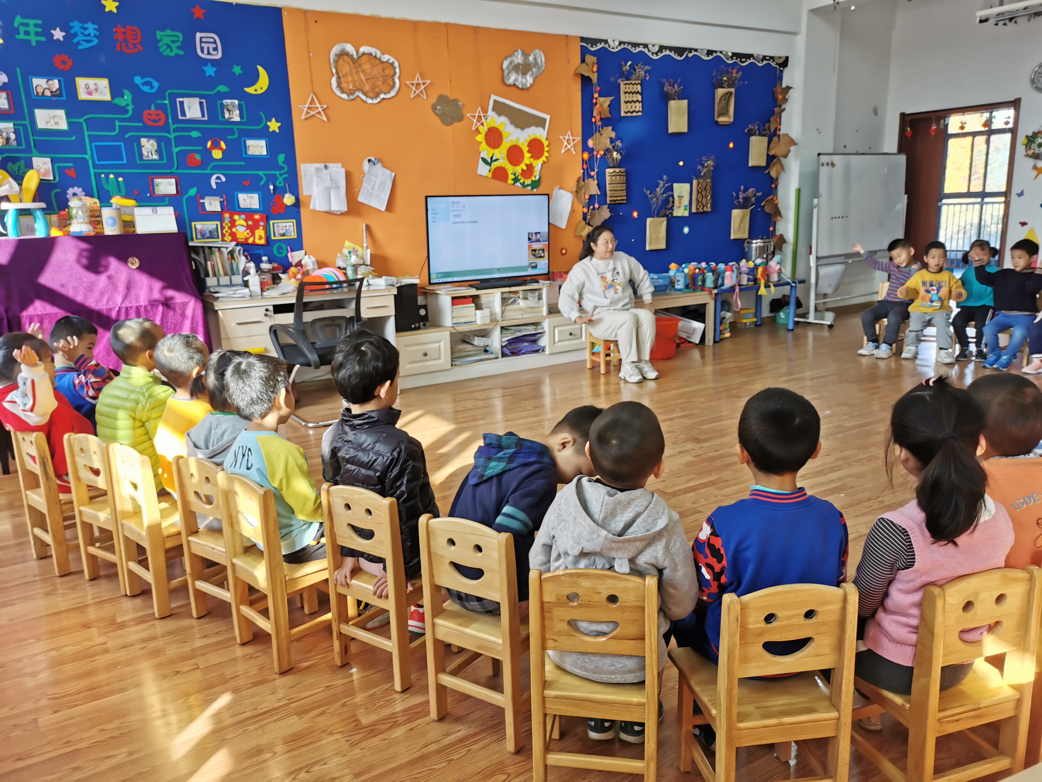 本次活动,中一班老师以晨间活动、早操、教学活动等丰富多彩的活动形式向家长展示了幼儿在园的生活学习情况。晨间活动形式多样,有室内桌面游戏和户外自由拍球练习,孩子们自主选择游戏类型,或静或动,玩耍嬉戏。晨间活动之后是早操展示。在《加油鸭》、《足球操》、《蒲公英在歌唱》等欢快的音乐声中,孩子们一起快乐地舞蹈、伸展四肢,合着音乐边唱边跳,欢快的氛围感染着在场的每一位家长。集体活动环节,家长们走进班级近距离观摩了孩子们的学习与表现。社会活动《想让你开心》,黄老师通过讲述小黄鸡的故事,让孩子们懂得了什么是友谊,如何关爱他人,做一个温暖的宝宝。科学活动《好玩的空气》,蒋老师通过“魔术表演”的方式让孩子们认识到空气的存在,并用塑料袋抓空气的小游戏让小朋友们认识到空气是无色无味却处处存在的,同时也跟孩子们传递了保护大气环境的绿色环保理念。活动中,教师们注重趣味性,多角度启发幼儿,让孩子们在游戏中探索、合作、收获。