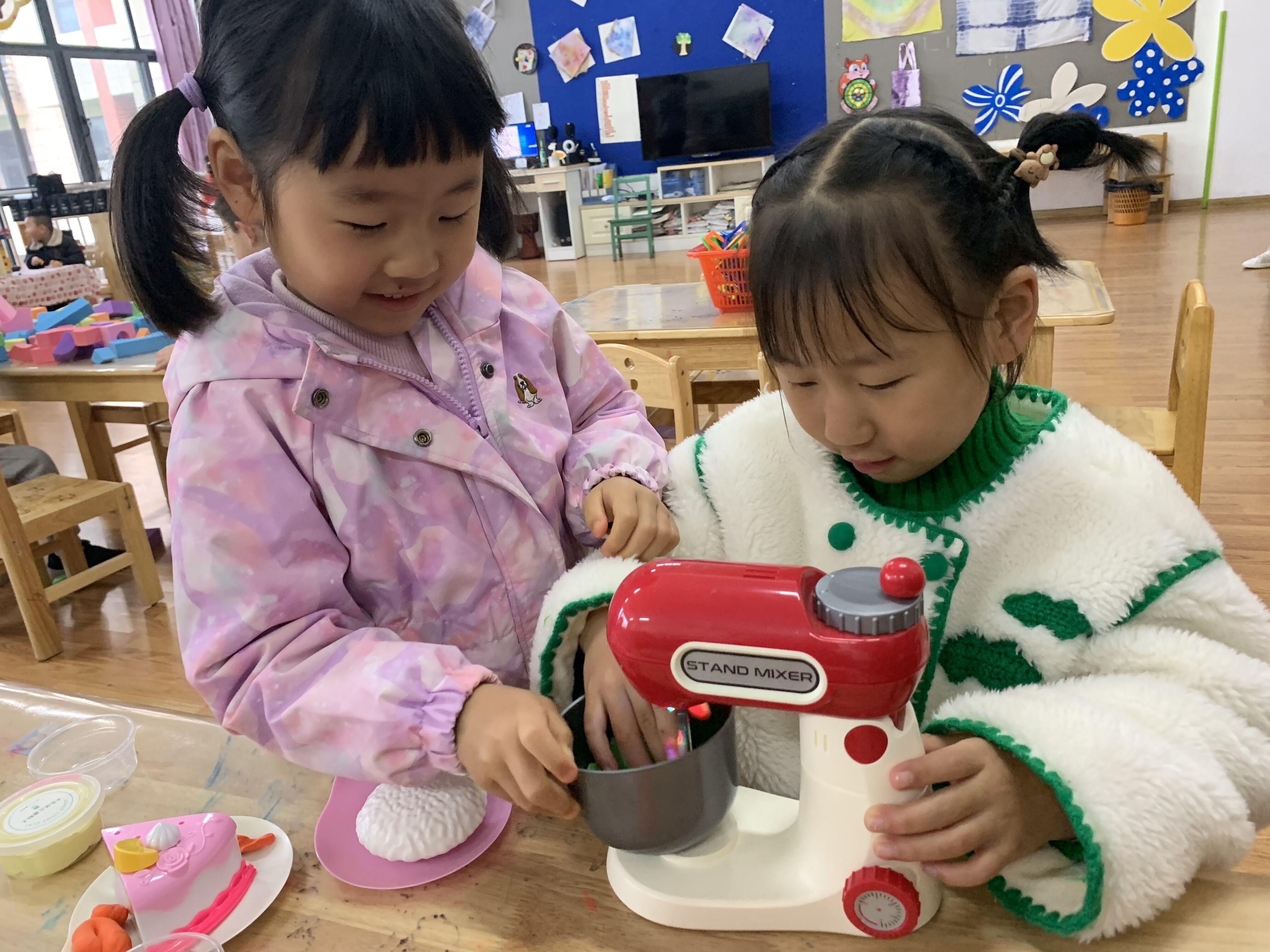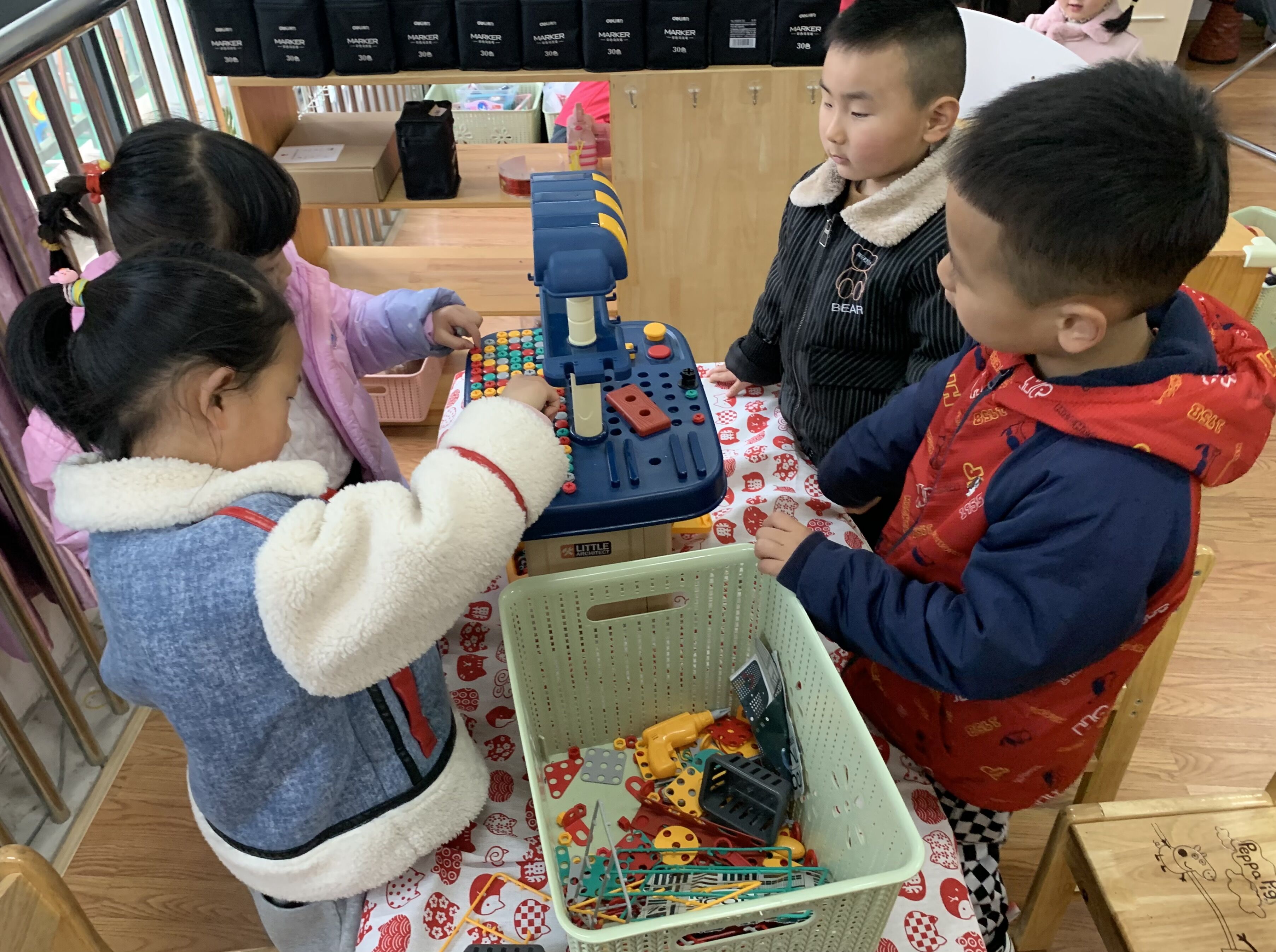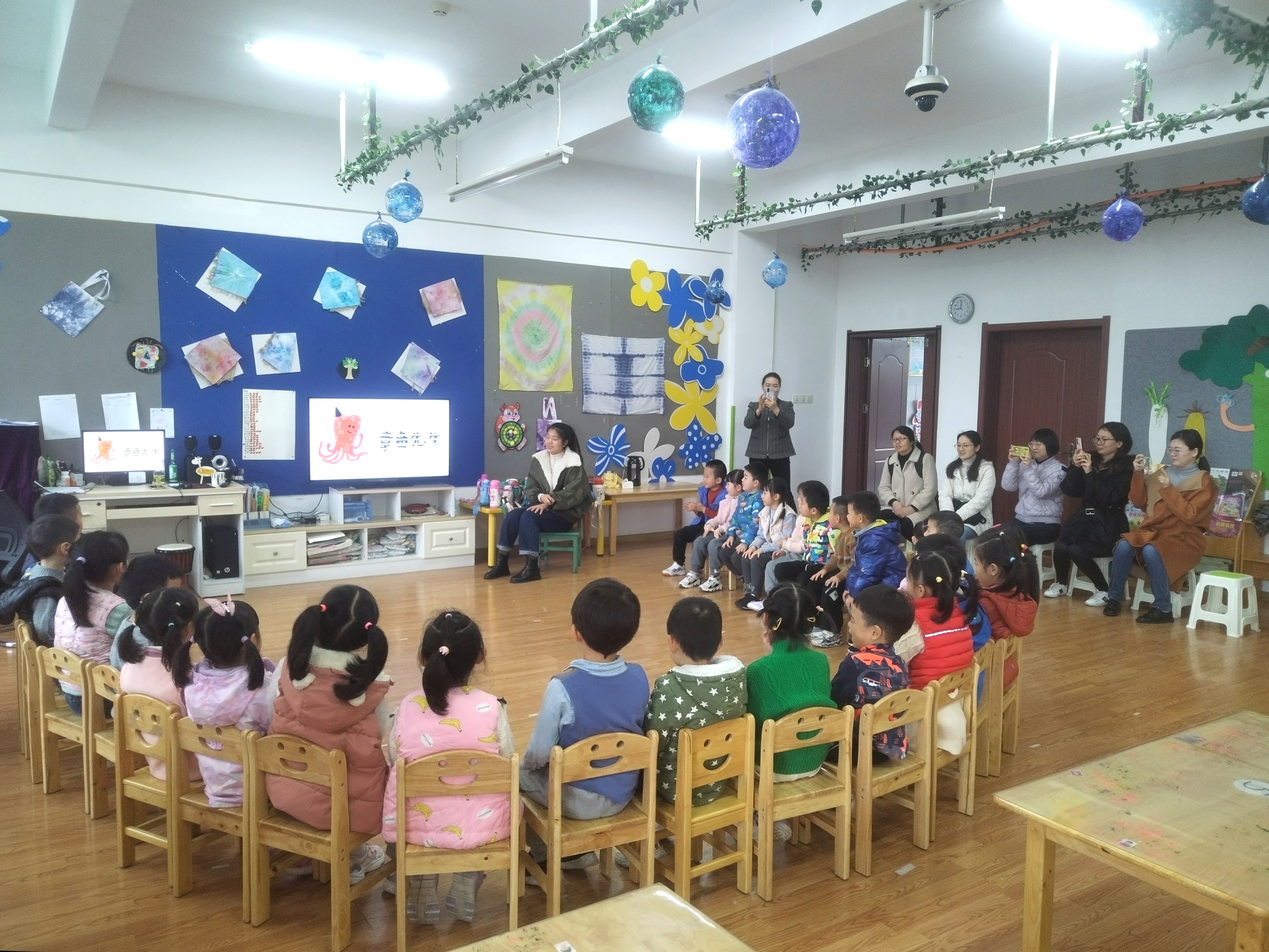 晨间,魔法屋、串串乐、小厨房、修理厂……区角里投放的材料让孩子们太开心了,小手动个不停,笑声连绵不断。做早操时,孩子们边跳边唱,活泼可爱。家长们高高举起手机,记录下每一个精彩时刻。