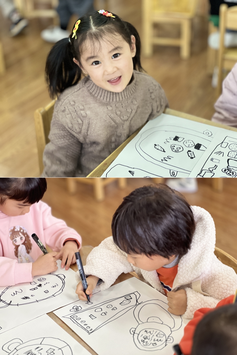 下午起床后小朋友们用自己的画笔记录下来今天美味的火锅!