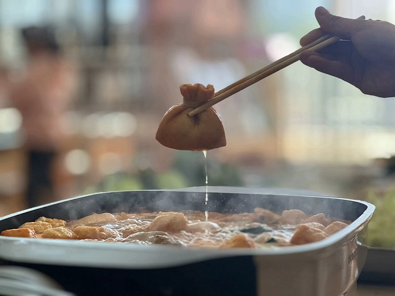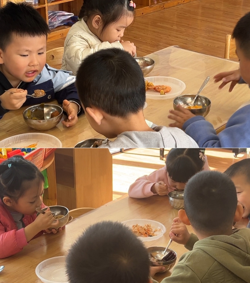 终于到了吃火锅环节,“咕咚!咕咚!”喜欢的食材都下锅啦!食物顽皮地在锅里翻滚,孩子们目不转睛地盯着,垂涎欲滴,教室里香气四溢,我们等不及了,赶快开吃吧!
