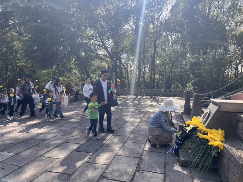在庄严的纪念碑前,全体小朋友齐声高唱中华人民共和国国歌,用稚嫩嘹亮的童音表达了对革命先烈的崇高敬意和对伟大祖国的深深热爱。随后,小朋友在老师的引领下,向烈士们献花、默哀,深情缅怀革命先烈的丰功伟绩。
