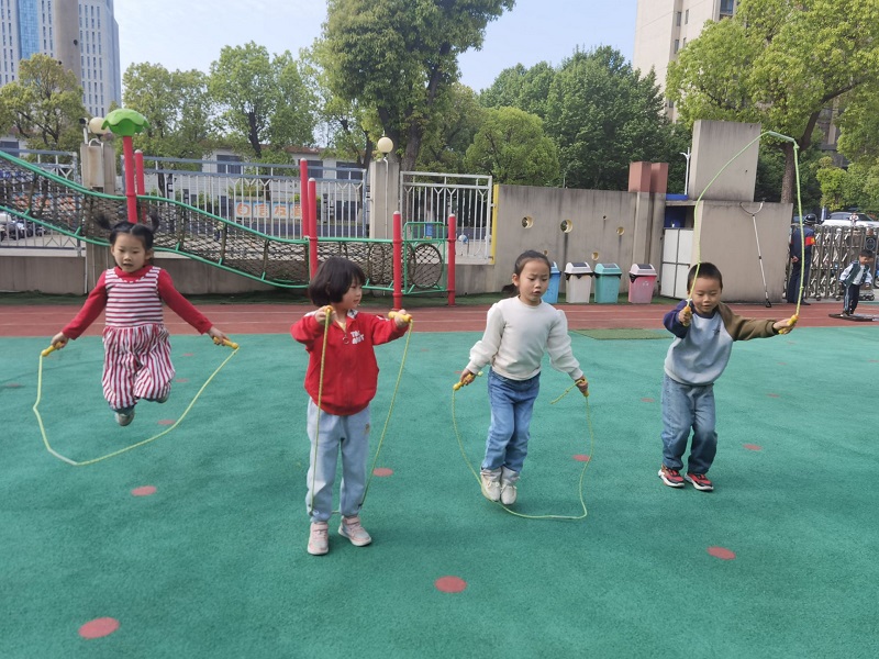 上午八点,大三班迎来了一群心情激动的家长和开心的小朋友。孩子们的一天从跳绳和花样轮胎开始,还有朝气满满的表演操和韵律操,孩子们的身体在趣味运动中得到了锻炼。