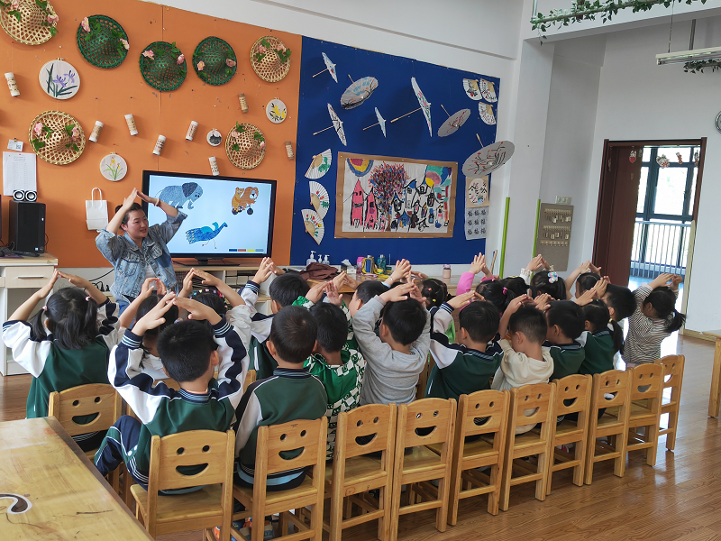倾听·寓教于乐。在学习和游戏活动中,老师们精心设计教学环节。通过生动的语言讲述绘本故事《章鱼先生卖雨伞》,用角色扮演的方式吸引孩子们集中注意力观察,主动思考,大胆表达。通过手工制作雨伞,给雨伞上色等培养孩子们的色彩表现力。数学活动《大熊的储藏室》,老师通过谜语的形式导入,激发出孩子们的兴趣,使用课件按照食物的颜色、形状、种类进行分类,并借助“闯关游戏”初步感知二次分类,同时引导孩子们将班级里的图书、玩具等物品分类摆放,让班级看起来更整洁。在轻松愉快的氛围中,家长们也以幼儿的视角体验和感受孩子们的成长。