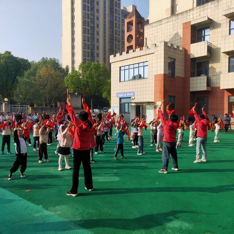 伴随着欢快的音乐响起,孩子们在老师的带领下富有节奏、精神饱满地做起了早操。小小的身体充满着大大的能量,整齐划一的动作展示出自信、阳光的精神风貌。他们挥动的双手,跳跃的双脚,欢快愉悦的神情感染着每一位家长。