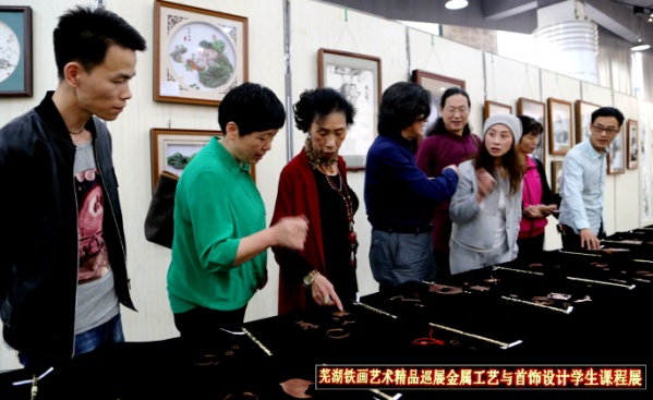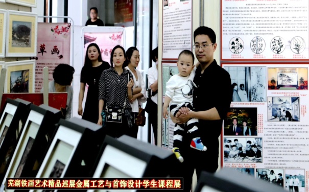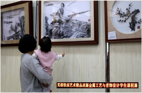 为了丰富校园文化生活,传承弘扬国家非物质文化遗产芜湖铁画,提高大学生文化创新能力和文化素养。响应文化部非遗进校园活动,芜湖铁画协会与艺术学院于5月7日至12日在艺术学院一楼展厅举办了芜湖铁画精品巡展和艺术学院金属工艺与首饰设计学生课程展,多幅出自储金霞、聂传春等铁画大师的作品参加了展出。