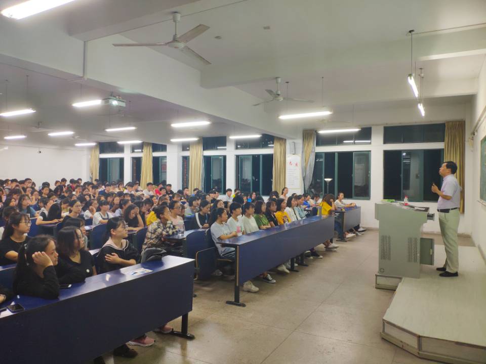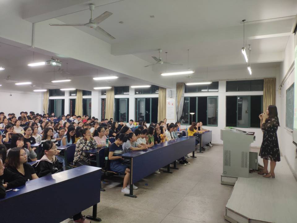 杜松涛、钱媛媛两位老师向全体学生阐释了大学生心理健康的内涵和重要性,指出了大学新生容易出现的问题,给出了解决问题的四点建议:一是聆听心声。生活状态和评价体系的突然变化容易造成自我认同危机,要学会适应问题。二是人际交往适应。在大学交往中要学会主动、包容、互助和尊重。三是构建支持系统。遇到问题时要相信自己,相信朋友,相信父母。四是换个角度看问题。换个角度有利于跳出狭窄的思维模式,开阔视野,即“跳出来才能走的更远”。