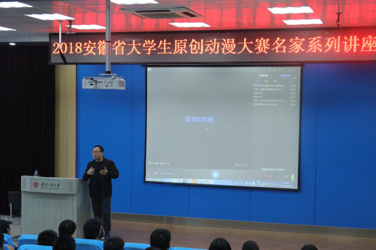 10月23日,艺术学院在5教117举办了2018安徽省大学生原创动漫大赛名家系列讲座。本次系列讲座是2018安徽省大学生原创动漫大赛评审会的重要组成部分,旨在营造动画创作氛围,活跃动画学术风气。讲座由张学东教授主持,动画系及其它专业师生参加了此次讲座。