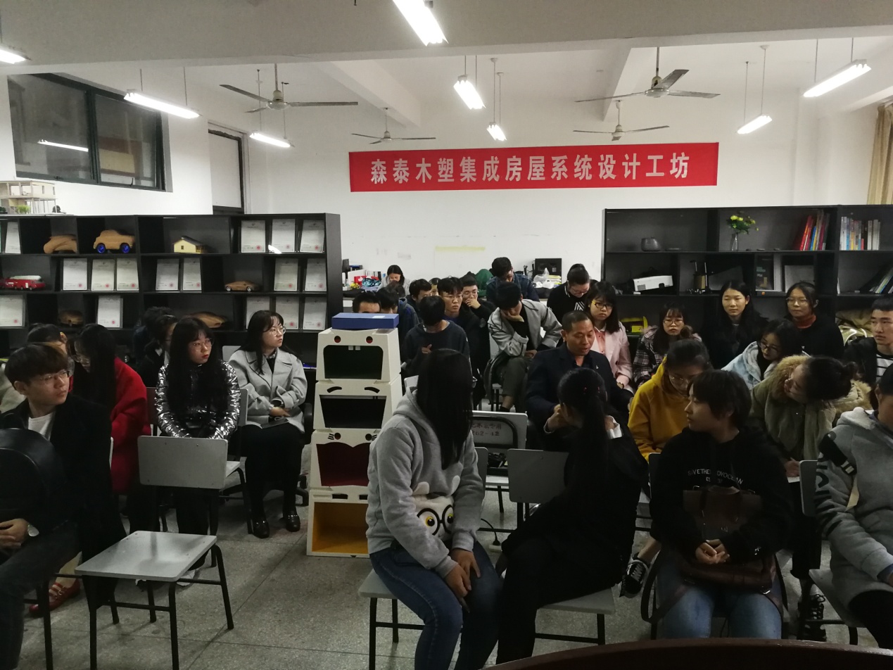 11月15日下午,艺术学院邀请“工业设计实践教育基地”安徽森泰木塑集团安徽森泰易可搭集成房屋建设有限公司总经理吴述春、安徽鸿泰建筑设计公司设计总监黄晋双,来我院指导“森泰木塑集成房屋系统设计工坊”活动,并开展相关讲座。