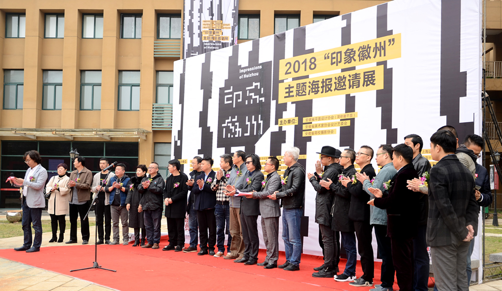 由安徽省平面设计协会面向全球知名设计师和设计教育专家发出邀请的“印象徽州”主题海报国际邀请展,于2018年11月11日上午在合肥第一展区安徽工商职业学院合瓦艺术馆开幕,当天下午在徽州第二展区黟县徽堂展览中心开展。该展由我校艺术学院史启新副教授与徽平面协会主席罗以银先生共同担任总策展。安徽省平面设计协会、安徽省美术家协会设计艺委会、安徽省高校摄影协会共同主办,我校艺术学院为学术支持单位。艺术学院院长黄凯教授代表省美协设计艺委会在开幕式中致词。