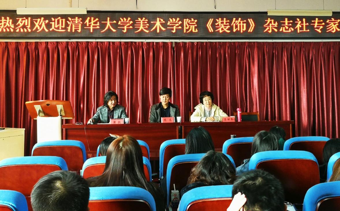 2018年11月23日,RayBetApp官网下载 艺术学院邀请清华大学美术学院《装饰》杂志社编辑部主任周志、办公室主任马毓勤来我院举办设计学学科学术研究系列讲座,并与我院教师、近百名研究生进行论文写作方面的学术交流,我院黄凯院长出席并主持。