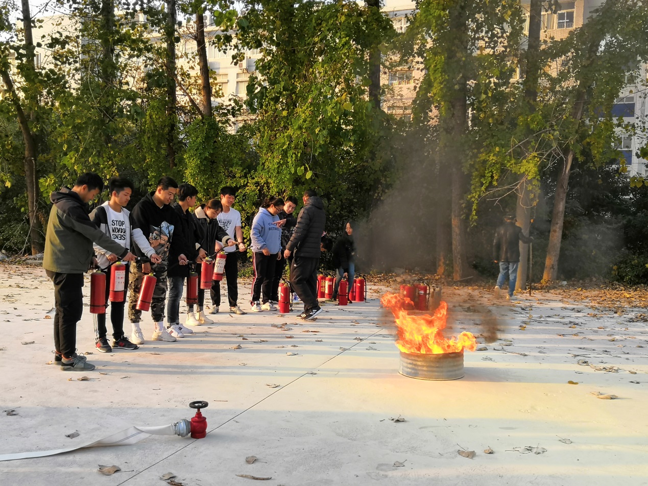 理论与实践的结合才能让学生真正的提高消防能力。在教室接受了理论学习后,学生们在张翀老师的带领下,学习了如何使用灭火器扑火。同学们兴致勃勃,纷纷主动上前实操演练。