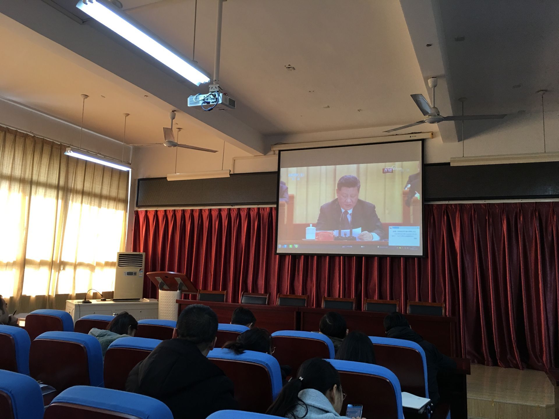 2018年12月18日上午10时,庆祝改革开放四十周年大会在北京人民大会堂举行。艺术学院党委中心组全体成员在三楼会议室集体收看大会盛况直播,聆听习近平总书记所作的报告,并深入学习大会精神。