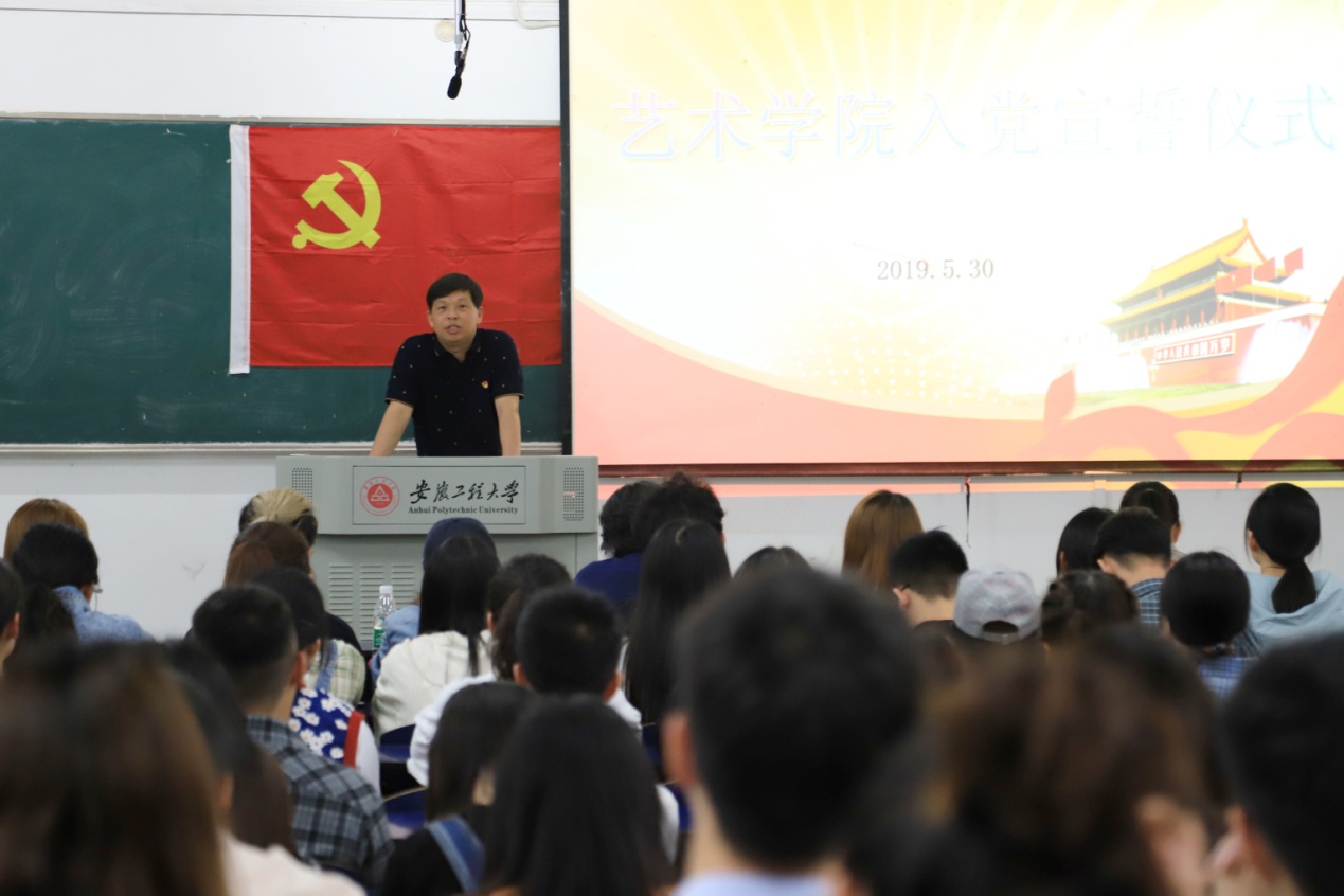 党旗招展,誓词铮铮。5月30日下午,艺术学院党委于六号教学楼举行新党员入党宣誓仪式。艺术学院党委书记黄凯、党委副书记任家钱、学生各支部书记和新发展的全体党员参加了本次宣誓仪式,仪式由张焱主持。