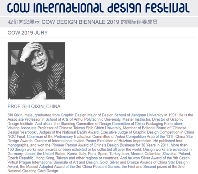 近日获悉,艺术学院史启新副教授应邀担任乌克兰2019 COW设计双年展(COW DESIGN BIENNALE2019)国际评委。本届双年展对国际评委的邀请基于其专业水平、专业素质等方面的全面考量,由6位分别来自中国、美国、伊朗、巴西、中国香港的设计专家组成评审团。