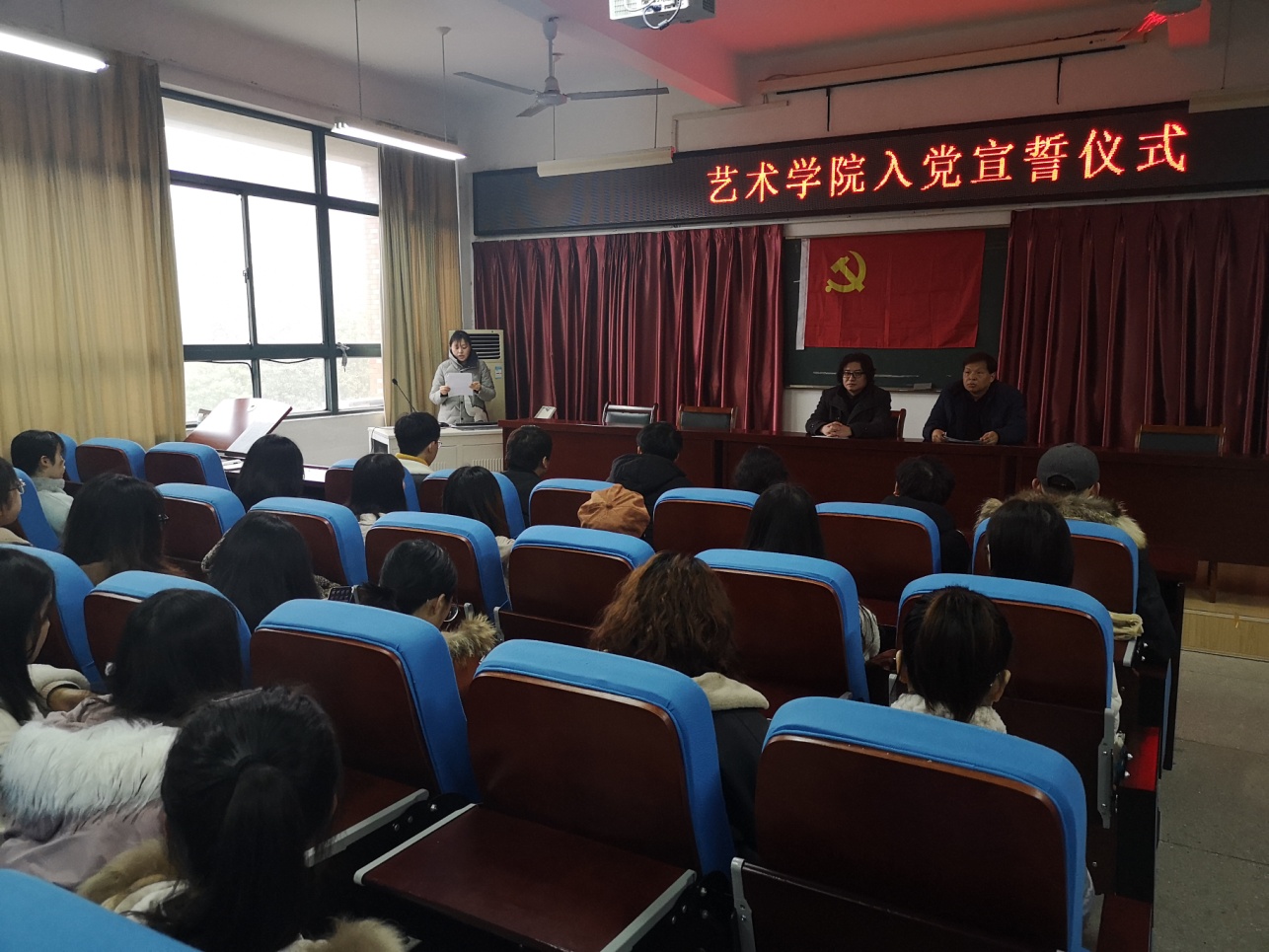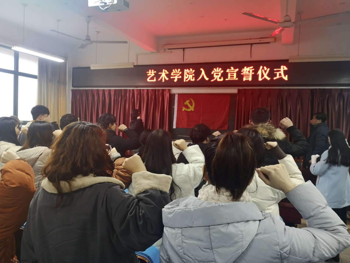 12月25日下午,艺术学院党委在7教303举行了2019年下半年新党员入党宣誓仪式。艺术学院党委书记黄凯、党委副书记任家钱、各学生党支部书记和新发展的55