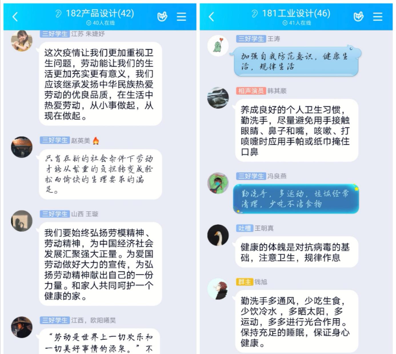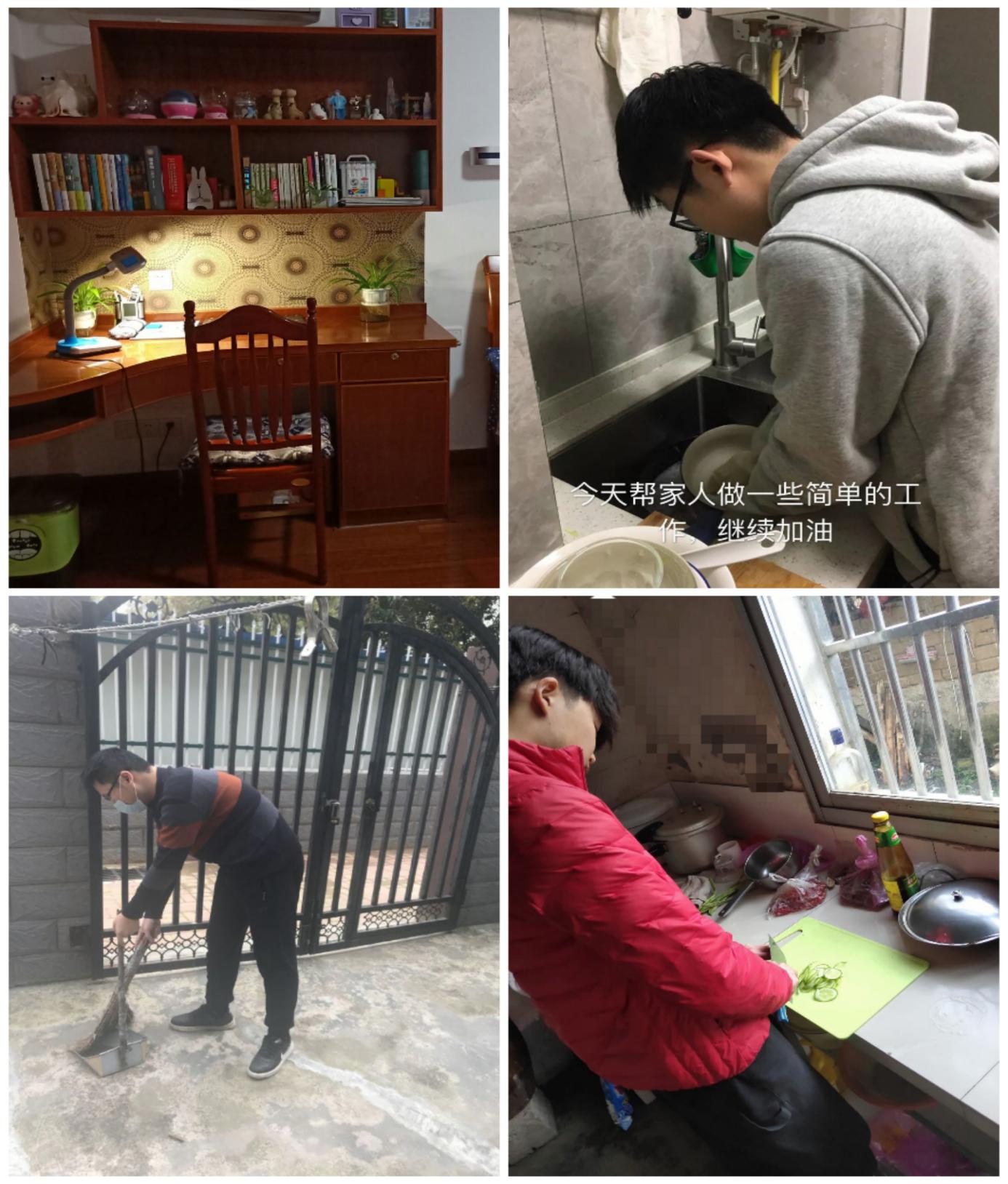 在“温馨的家”居家劳动专项活动中,辅导员花样线上查寝,全体同学热情响应。积极主动帮助家人打扫卫生、烹饪美食,做好垃圾分类、清理卫生死角,并通过“小手拉大手”,引导家长参与爱国卫生运动,开展全民大扫除,净化家居环境,在居家劳动中涵养劳动精神,树立“每个人都是自己健康第一责任人”的理念,强化生态文明意识。