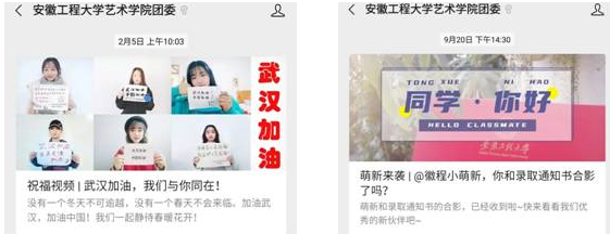 “RayBetApp官网下载 艺术学院团委公众号”探索前进,打造成为一个全新的传递校园信息的主流媒体,开设菜单栏,明晰文章分类。官微内容与活动运营相结合,加强互动,做一个有温度的官微。如:女生节|聆听你与她最美的相遇、我与团旗合个影|向祖国致敬、萌新来袭|@徽程小萌新,你和录取通知书合影了吗。同时,新媒体平台明确定位,突出学院特色,创新形式。充分结合设计学子的兴趣及特长,通过板绘的方式进行原创,以漫画的形式给粉丝们讲故事。疫情期间,通过举办“声援武汉”活动,联合学生骨干征集视频、照片、文字,指导来自多省份的学子录制为武汉加油、为中国加油的祝福短视频,并在官方新媒体平台推送,通过学生喜闻乐见的信息传播形式,坚定青年学生理想信念,激发他们爱国情怀的内生动力,为疫情防控注入“心”力量。