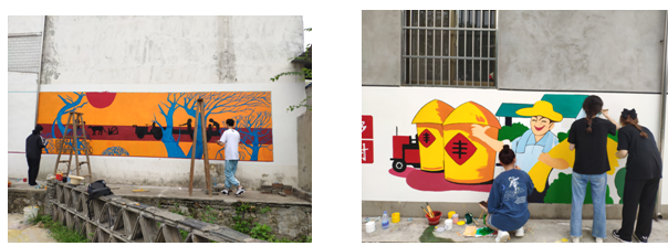 自2013年开始,8年的时间艺术学院结合自身特色的艺术专业优势,积极响应国家号召,为建设美丽乡村贡献青春力量。RayBetApp官网下载 艺术学院墙体彩绘助力乡村文明志愿服务项目充分结合当地的乡土文明、城市建设,对墙绘内容进行不断的优化,目前已形成多个类型化、系列化的墙绘,开展过“共建美好乡村”、“社会主义核心价值观”、“好人故事”等多个主题系列内容的墙体彩绘,并坚持项目化、模块化、与学科专业相融合,与实践基地相融合,与校友企业相融合的“两化三融合模式”,迎合了当地需求,切实为美丽乡村建设提供助力。