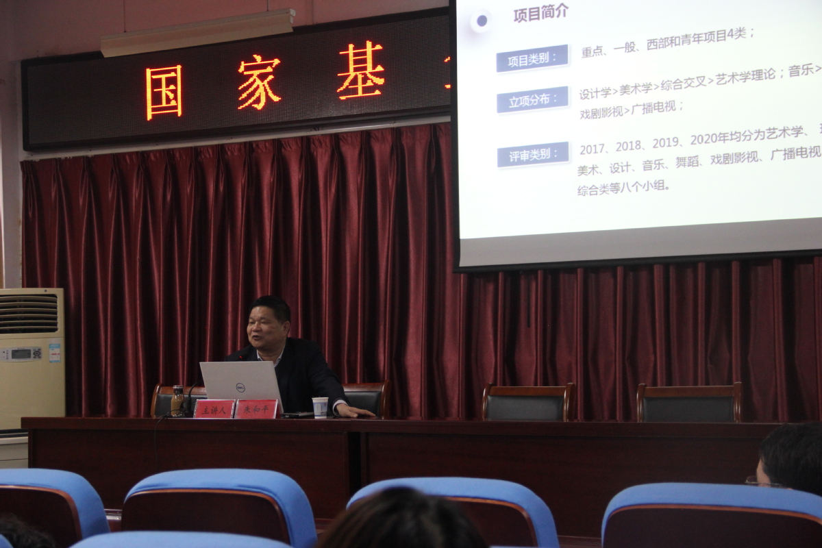 湖南工业大学包装设计艺术学院院长朱和平教授就国家社科基金艺术学项目的申报进行解读,结合我院教师的教师申报情况,从项目的选题、论证、以及项目申报书的填写进行了详细的辅导和解答。