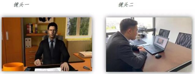 3.设备摆放要求:考生端两台设备开启摄像头。一机位摄像头对准考生本人,要求画面中可以同时展现考生完整的面部和手部。二机位摄像头从考生后方成45°拍摄,要求画面中可以展现考场环境。机位布置如图所示。两个摄像头要保证考生及考场环境能清晰地被复试专家组看到。