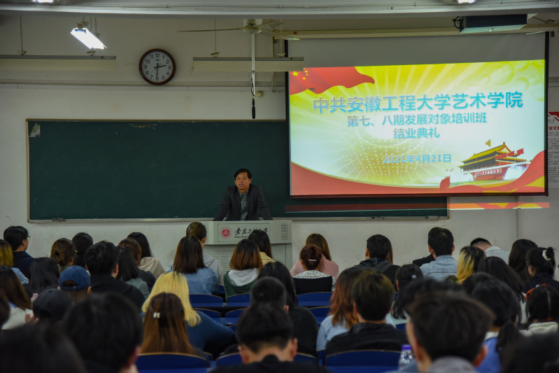 4月21日,艺术学院在6J212教室举行艺术学院分党校第七、八期发展对象培训班结业典礼,党委副书记任家钱及128位结业学员出席本次典礼,典礼由培训班班主任姚丽老师主持。