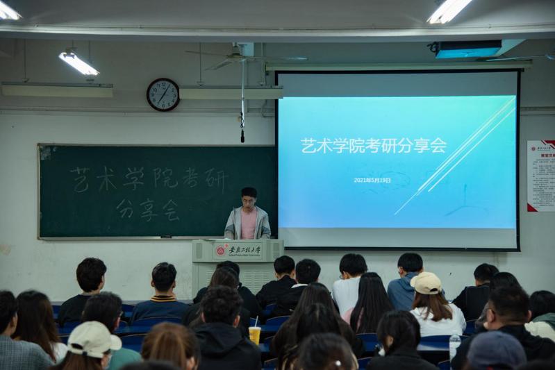 为了进一步加强学风建设,营造浓厚的考研氛围,帮助考研学生们掌握正确有效的复习方法,艺术学院于5月19日晚上在六教211教室举行考研经验分享会。本次分享会邀请工设171汪修品、动画172谢常丹、广告171徐丽萍为学生们分享考研心得,18级辅导员袁自坤以及部分考研学生参加此次分享会。