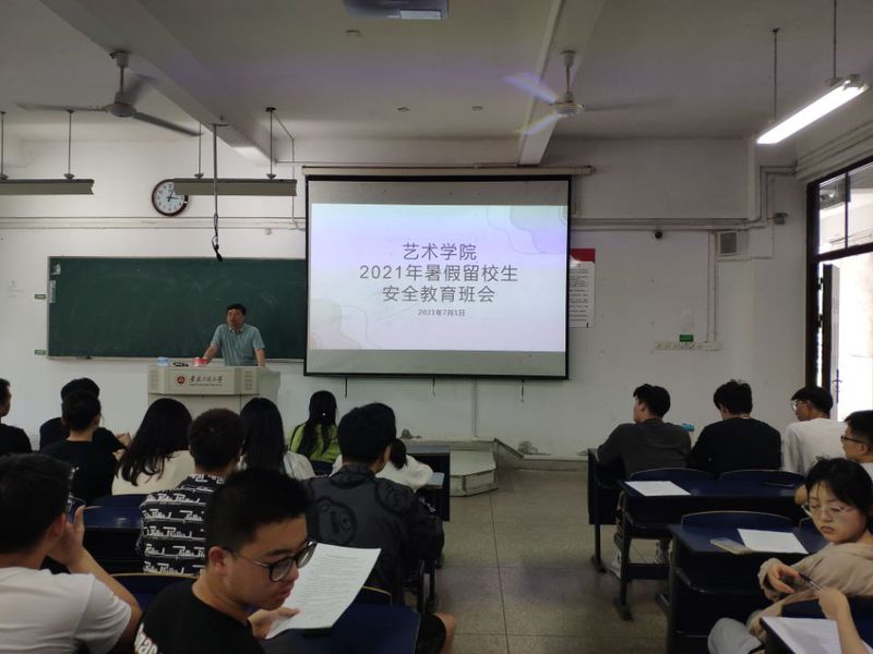 为切实做好暑期留校学生的安全教育工作,维护假期校园安全稳定,提高留校学生的安全防范意识,7月1日下午3点,艺术学院在6教111召开2021年暑期留校学生安全教育大会。院党委副书记任家钱,2018级辅导员以及全体留校学生参加了此次会议。