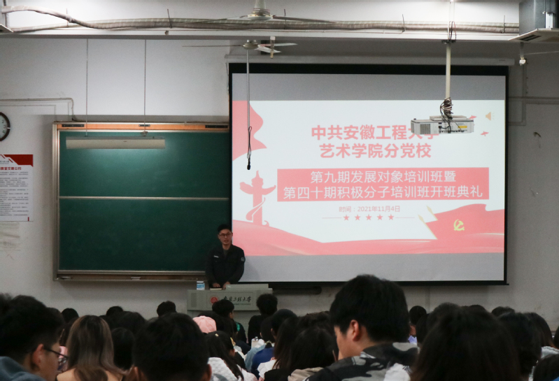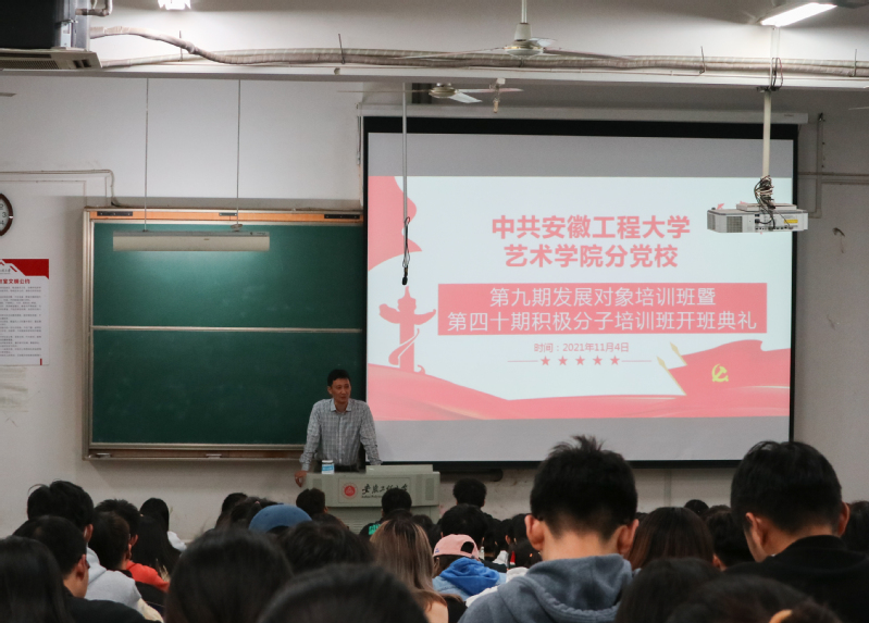 开班仪式在高昂的国歌声中拉开帷幕。首先,任家钱热烈祝贺发展对象培训暨积极分子培训班的成功召开,带领大家一起回顾了中国共产党一百年波澜壮阔的历史,鼓励青年大学生坚定中国共产党的领导核心地位,坚定共产主义理想信念。希望大家端正态度,正确认识培训的重要意义,增强新时代使命担当。要明确目标,学深悟透党的新思想新理念新要求,身体力行争取早日入党。要讲究方法,切实保证培训效果,全面展现艺术学院青年新面貌。