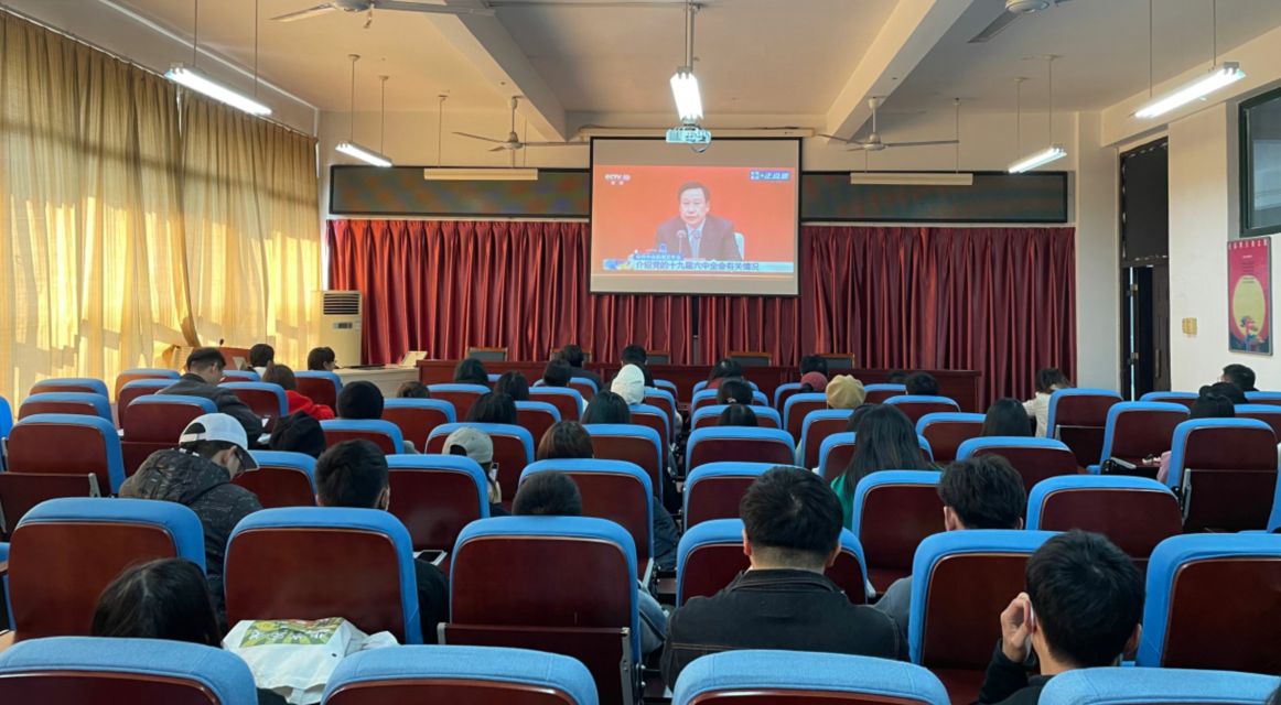 11月12日上午10点,艺术学院组织师生集中观看《十九届六中全会精神新闻发布会》,学院党委中心组成员、辅导员、部分教师和党课培训班学员参加,深入学习党的十九届六中全会精神。