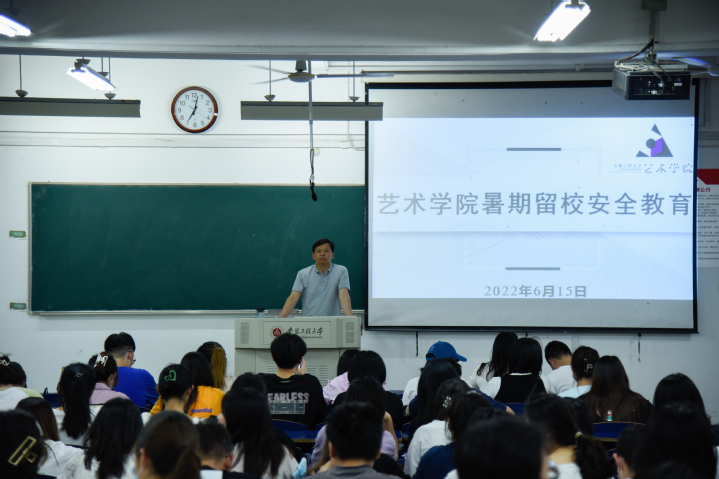 为进一步加强暑期留校学生管理,增强安全防范意识,艺术学院于6月15日在六教111举行艺术学院暑期留校安全教育主题会议。19级辅导员顾安骏、田潇濛老师以及全体暑期留校学生参加本次会议,会议由艺术学院党委副书记任家钱主持。