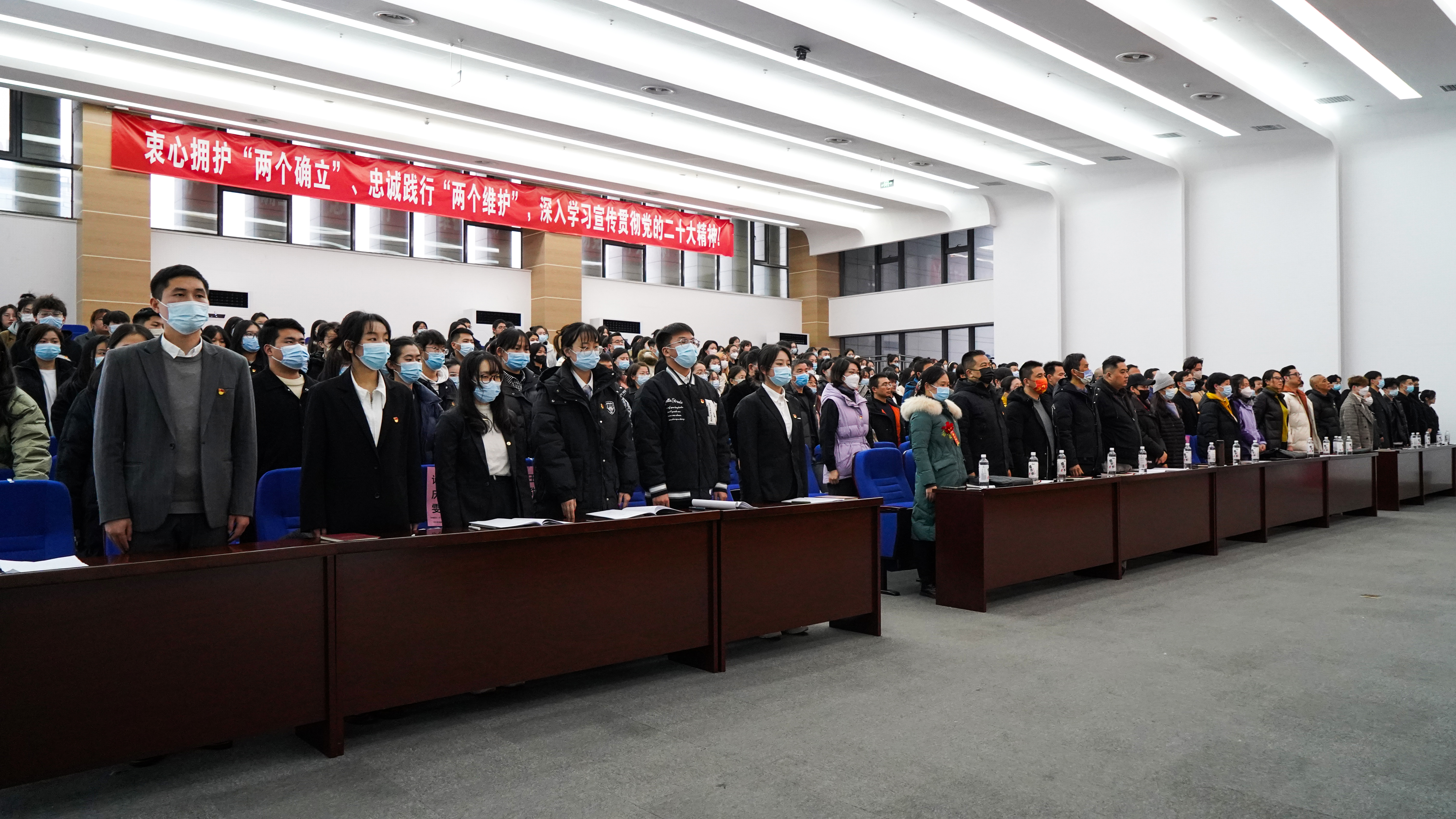 大会在庄严的《国歌》声中拉开帷幕。费为银代表校党委向大会的召开表示热烈祝贺,指出本次大会是在学院认真学习宣传贯彻党的二十大精神,落实“三抓”工作要求,加强新文科建设,推动学院新发展的关键时期召开的一次十分重要的会议,希望各位党员认真履行职责使命,把大会开成守正创新、求真务实的大会;发扬民主、凝心聚力的大会;继往开来、奋发进取的大会。要坚持把政治建设摆在首位,推动全面从严治党向纵深发展;要坚持立德树人为根本,按照“三全六专”育人工作要求,把促进学生健康成长、全面发展作为工作中心,培养德智体美劳全面发展的社会主义建设者和接班人;要坚持内涵式发展,开创高质量发展新局面。