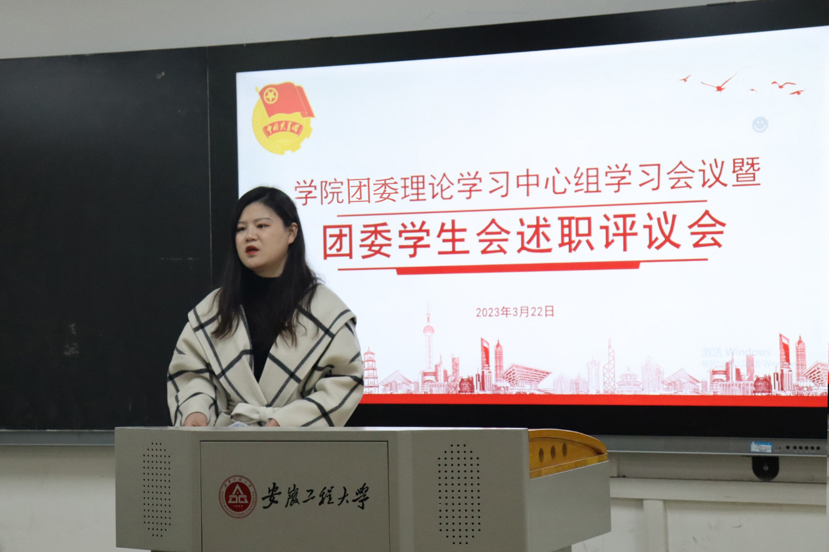 接着,团委学生会各部门负责人依次述职,根据自身的工作情况从政治态度、学习情况、道德品行、工作成效、纪律作风五个方面进行了全面的汇报,总结了个人在2022年秋季学期开展的工作,客观汇报了学生会在思想政治和价值引领、服务学生成长成才、学生权益维护等工作方面取得的成绩,深入查找了工作中存在的问题与不足,并结合“三全六专”工作要求对进一步加强学生会组织工作建设的改革创新路径进行了分享交流。参会老师、同学代表分别对述职汇报人进行打分评议。