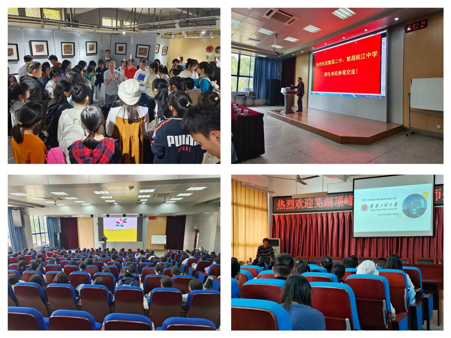 学院党委书记胡家增对中学师生进校园表示欢迎,并介绍了学校学院办学历程、教育教学理念、人才培养模式、专业设置和学生考研就业情况。姚明琦老师为同学们介绍了大学的培养目标,就本次课程作业作了重点介绍,向同学们表达了掐丝珐琅的精致灿烂、漆器的静谧内敛、纤维艺术的开放多样等,学院开设的这些课程,促使学生动脑动手,训练设计思维和应用开发能力。钱涛与吴劲松老师为同学们作认识艺术设计的专业宣讲,让同学们了解大学的学习内容,激励同学们认识新时代新要求,珍惜青春年华,奋发学习,在未来的职业生涯中有所作为。