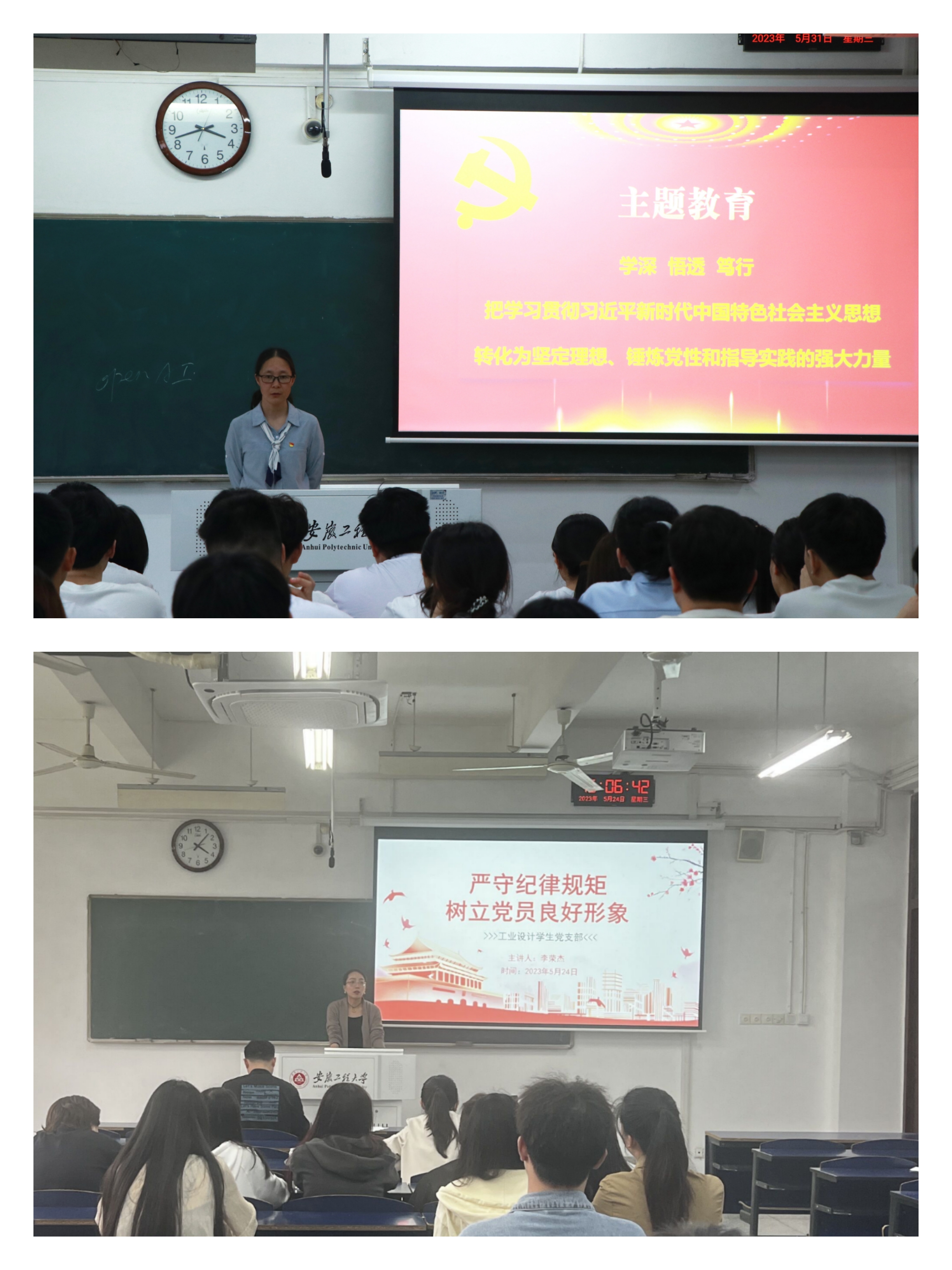 学院党委领导班子成员、各学生党支部书记为毕业生党员带来《建设社会主义文化强国-----关于新时代中国特色社会主义文化建设》《学生党员的“三全六专”实践示范》《严守纪律规矩树立党员良好形象》《坚持党对一切工作的领导,坚定不移跟党走》等主题教育专题党课,引导毕业生党员在主题教育学习中牢记坚定理想信念,牢记党员身份。组织学生党员观看红色电影《1921》,深入了解党史,增强党员对党的认同和对中国特色社会主义道路的坚定信心。组织学生党员围绕“三问”展开交流研讨,教育党员坚定理想信念,自觉做习近平新时代中国特色社会主义思想的坚定信仰者、积极传播者、忠实实践者。