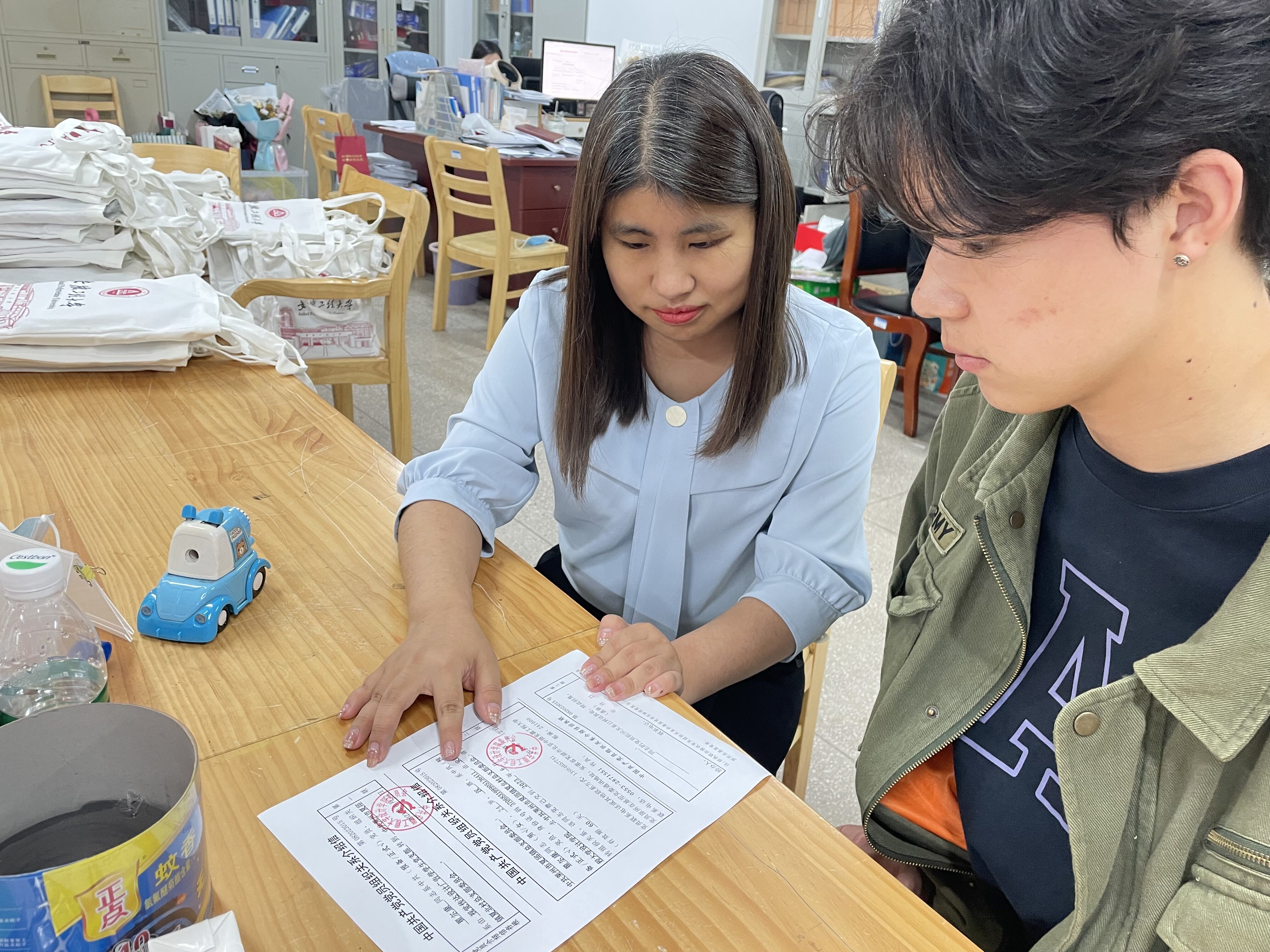 学院组织毕业生党员参加毕业生离校宿舍值班工作,值班党员第一时间了解学生需求、诉求和感受,帮助解决毕业生在离校阶段遇到的难题,帮助毕业生物品打包、行李搬运等工作。在毕业生党员间建立“党员1带3”促就业小组,做好联络沟通、政策宣传、岗位推介等工作,助力毕业生就业创业。学院把志愿服务融入到毕业季的方方面面,结合师生需求,创新开展各项志愿服务活动。帮助同学进行毕业作品布展,为参观的师生介绍自己和同学们的毕业作品;开展毕业书籍捐赠活动,组织毕业班党员将带不走的资料书、工具书、课外书捐赠给图书角,将知识与智慧传递给学弟学妹;参与毕业生党员档案整理工作,组织毕业生党员仔细对照学生名单,细心查看,认真核对,分别归档,逐项记录,确保每位学生档案完整。